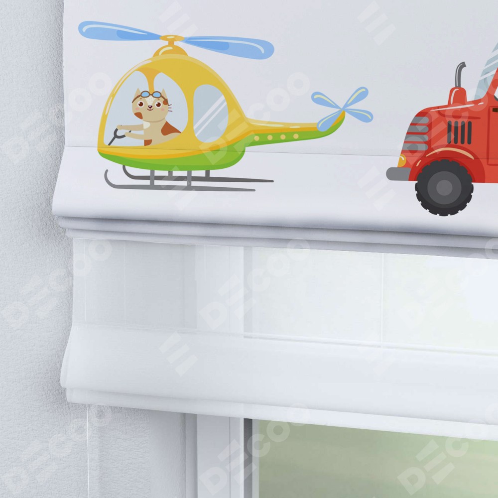 Римская штора день-ночь производителя «Cortin», используется для проёма, пошита из двух полотен, с лицевой блэкаут с нанесением сублимационной печати «Увлекательная поездка», вторая ткань тюль (по стандарту комплектуется тюль белого цвета артикул V-01). Имеет универсальный механизм и подходит для монтажа: на потолок, на стену и в нишу.