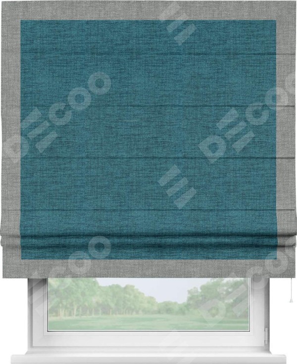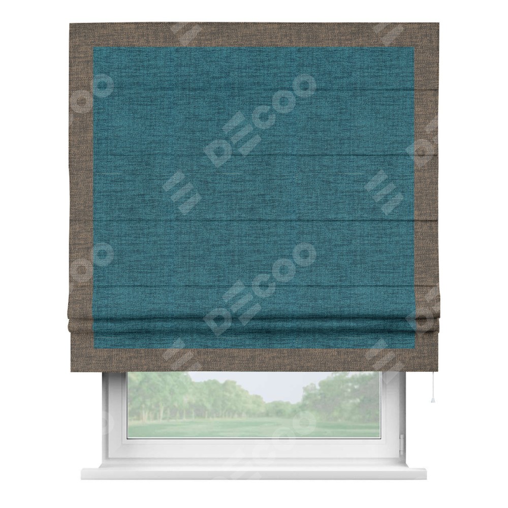 Римская штора «Кортин» с кантом Чесс, для проема, ткань рогожка димаут, синий