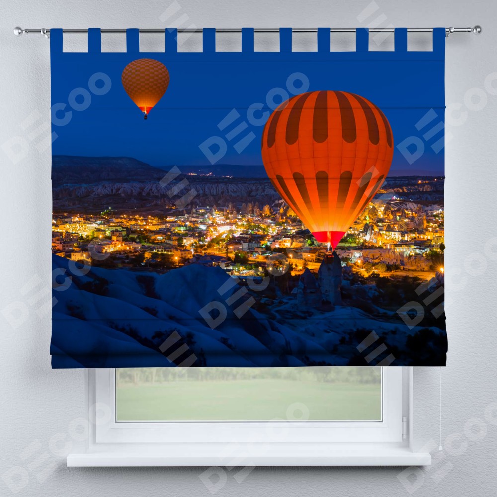Римская штора производителя «Cortin», используется для проёма, пошита из ткани блэкаут с нанесением сублимационной печати «Воздушные шары в небе». Данная модель пошита на петлях, комплектуется на выбор круглым карнизом и подходит для монтажа на стену. Римская штора на петлях имеет простую систему регулировки высоты, отличительным преимуществом данной модели является простой способ монтажа. Достаточно повесить ее на трубу и штора готова!