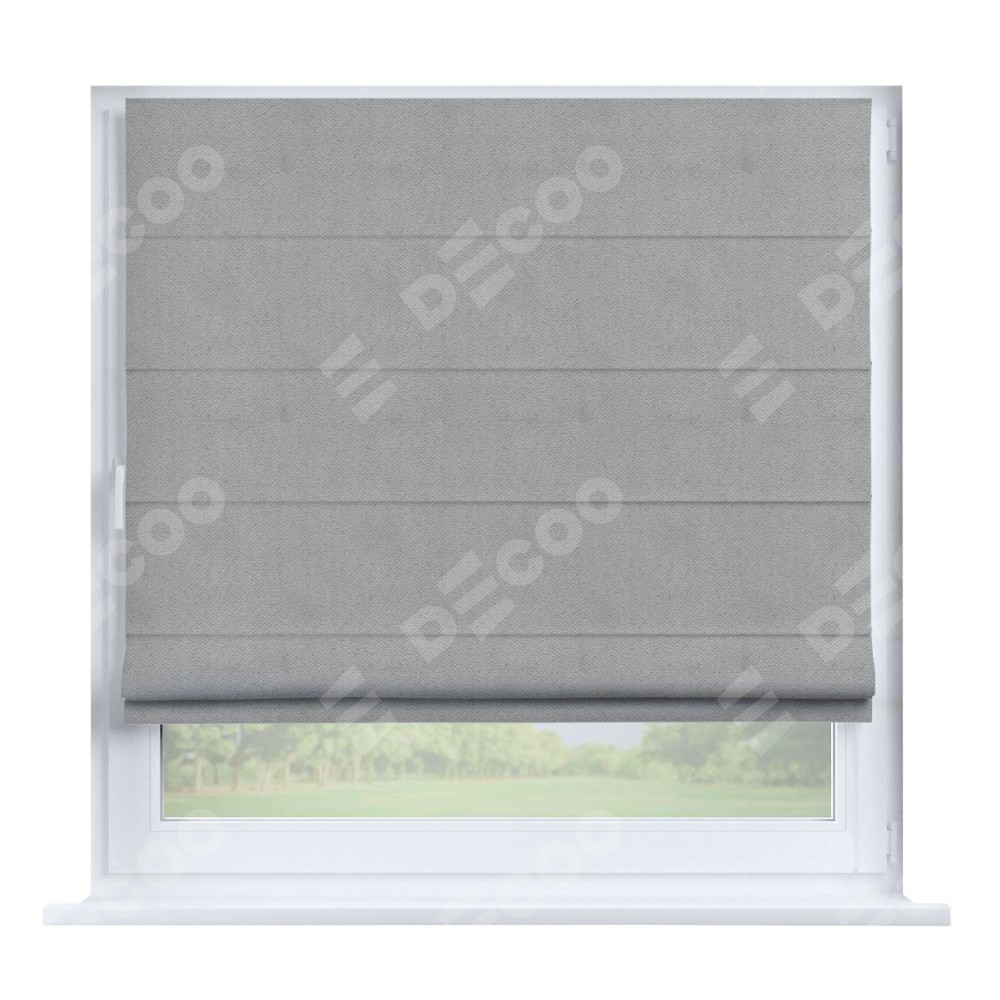 Римская штора производителя «Cortin», устанавливается на створку окна, пошита из ткани блэкаут с блеском тёмно-серый, артикул 34634. Изнаночная сторона материала черного цвета, что обеспечивает необходимую светонепроницаемость. Штора шьётся по индивидуальным размерам, для данного типа римской шторы возможная ширина от 35 до 150 см., высота до 250 см.