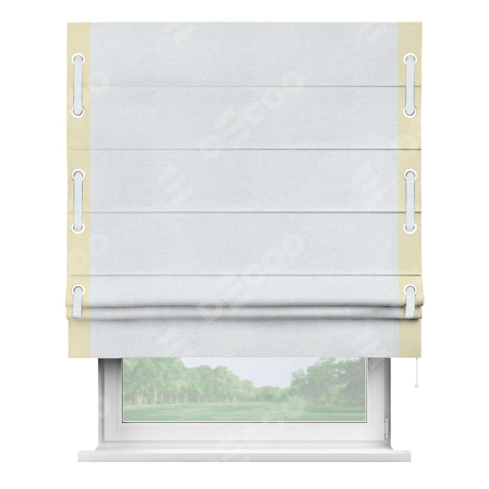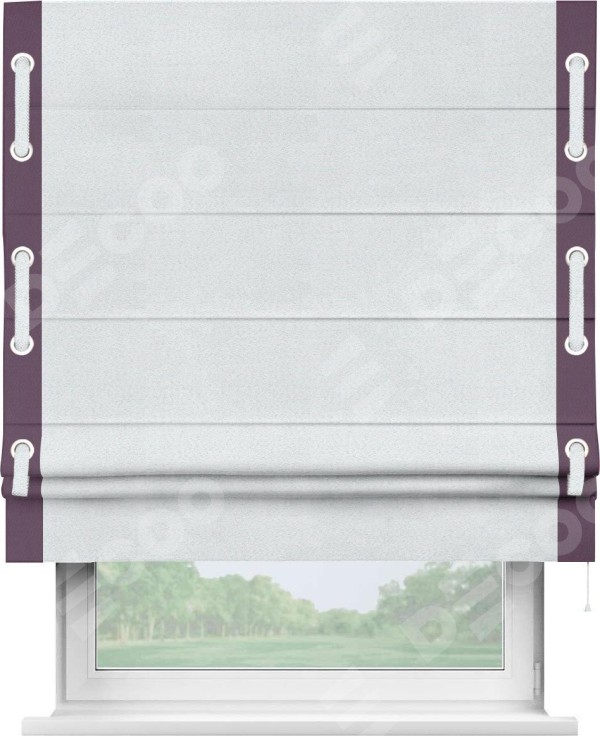 Римская штора «Кортин» с кантом Стрим Дуо (люверсы с пояском), для проема, ткань блэкаут однотонный дымчато-белый