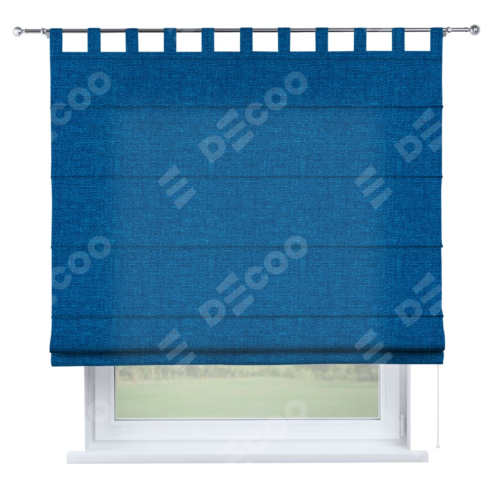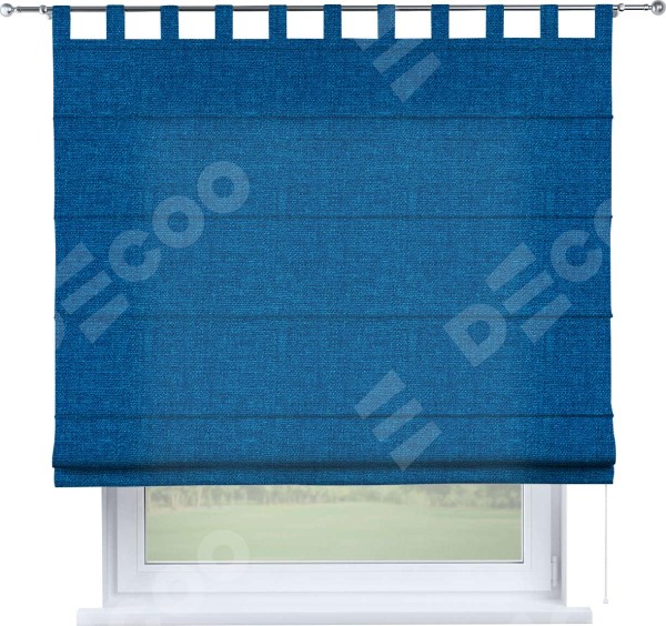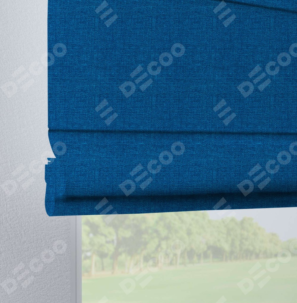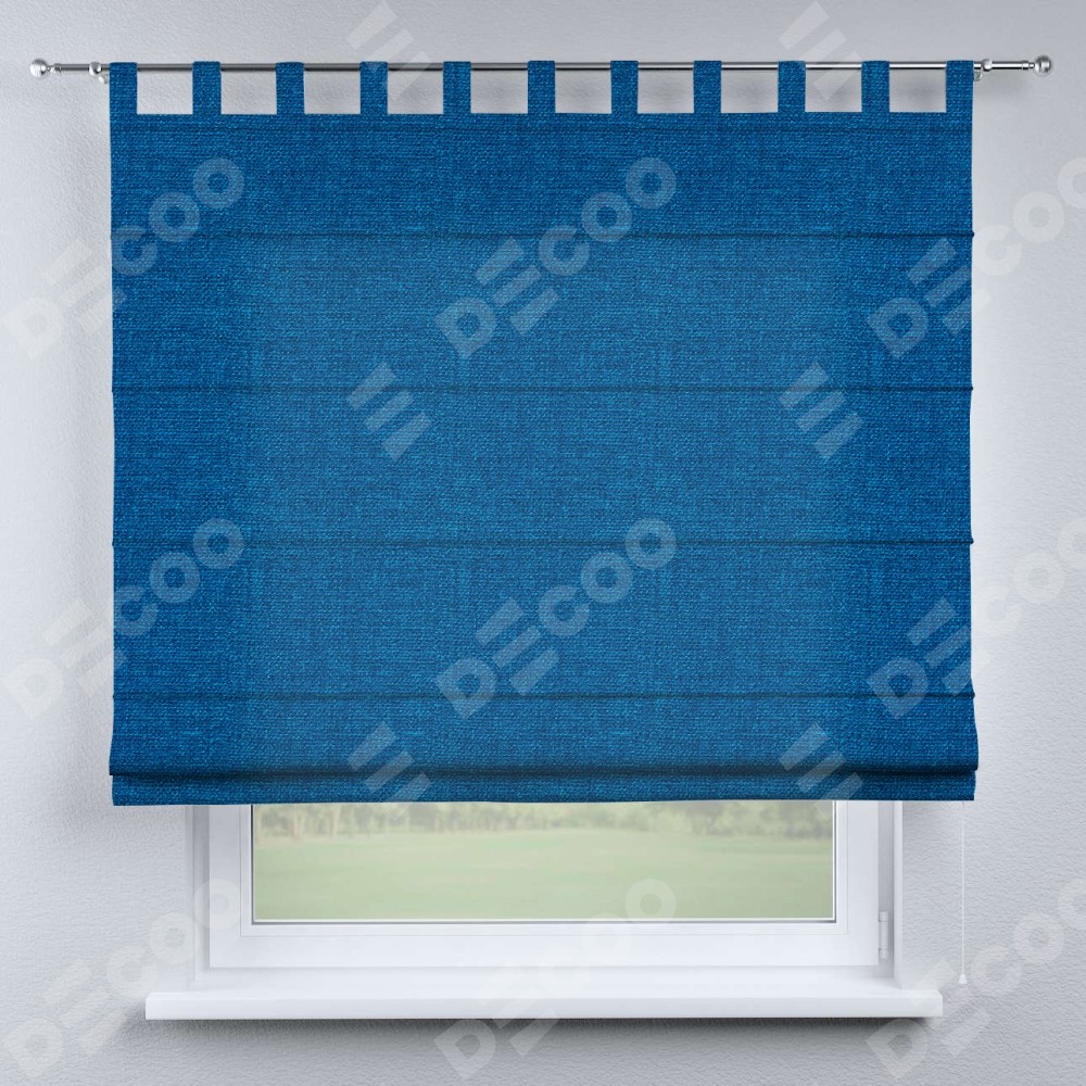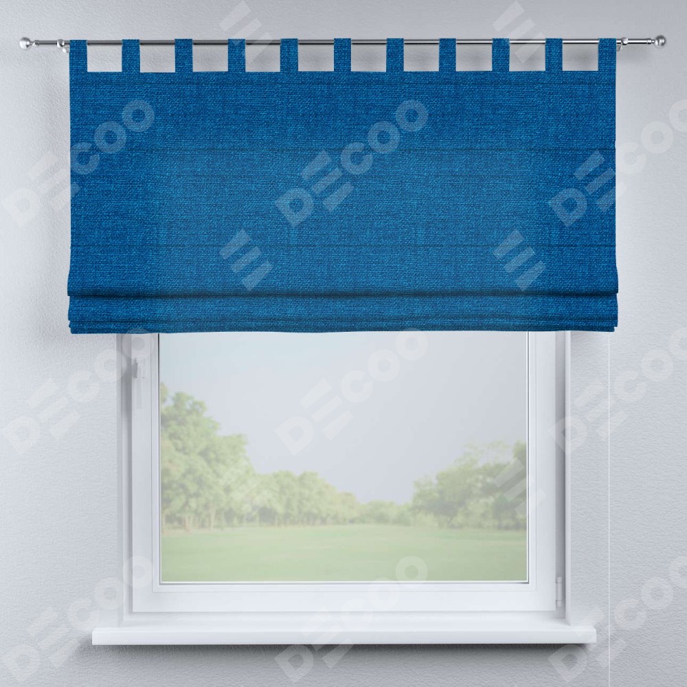 Римская штора производителя «Cortin», используется для проёма, пошита из ткани лён синий, артикул ткани 63742. Данная модель пошита на петлях, комплектуется на выбор круглым карнизом и подходит для монтажа на стену. Римская штора на петлях имеет простую систему регулировки высоты, отличительным преимуществом данной модели является простой способ монтажа. Достаточно повесить ее на трубу и штора готова!