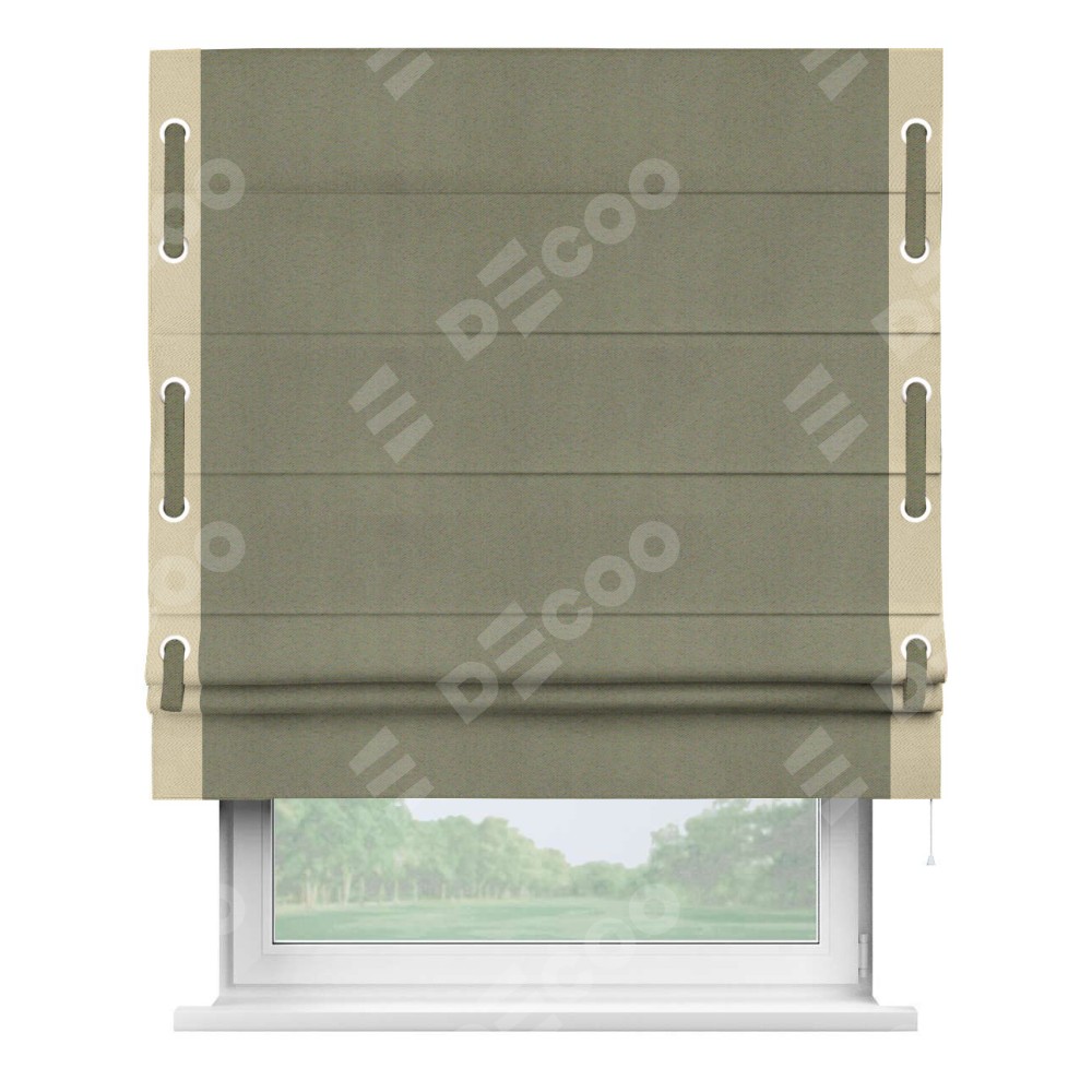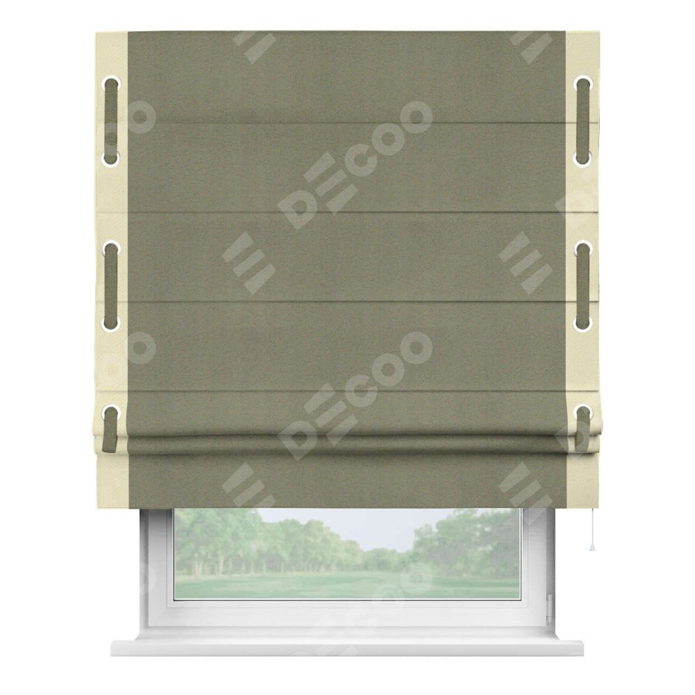 Римская штора «Кортин» с кантом Стрим Дуо (люверсы с пояском), для проема, ткань блэкаут однотонный серо-коричневый