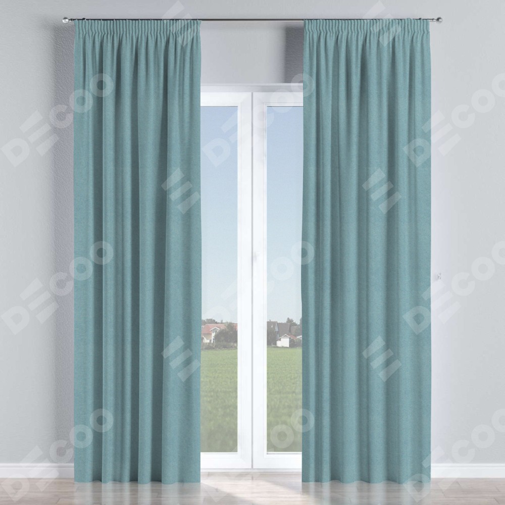 Комплект прямых штор, от производителя «Cortin», пошиты из ткани блэкаут с блеском синий, артикул ткани 34625. С изнаночной стороны в верхней части штор пристрачивается шторная лента с декоративными складками «Карандаш». Обратная сторона основного материала черного цвета, что обеспечивает необходимую светонепроницаемость. Для создания элегантных складок прямые шторы шьются по стандарту с коэффициентом 1:2 (на 100 см. ширины проёма 200 см. ширины ткани).
