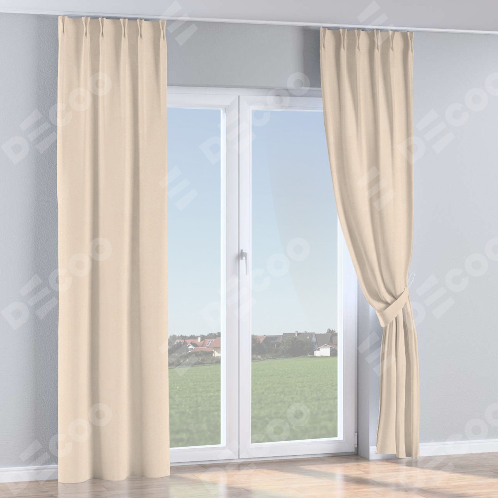 Комплект прямых штор, от производителя «Cortin», пошиты из ткани блэкаут с блеском розовая пудра, артикул ткани 34632. С изнаночной стороны в верхней части штор пристрачивается шторная лента с декоративными складками «Кустик». Обратная сторона основного материала черного цвета, что обеспечивает необходимую светонепроницаемость. Для создания элегантных складок прямые шторы шьются по стандарту с коэффициентом 1:2 (на 100 см. ширины проёма 200 см. ширины ткани).