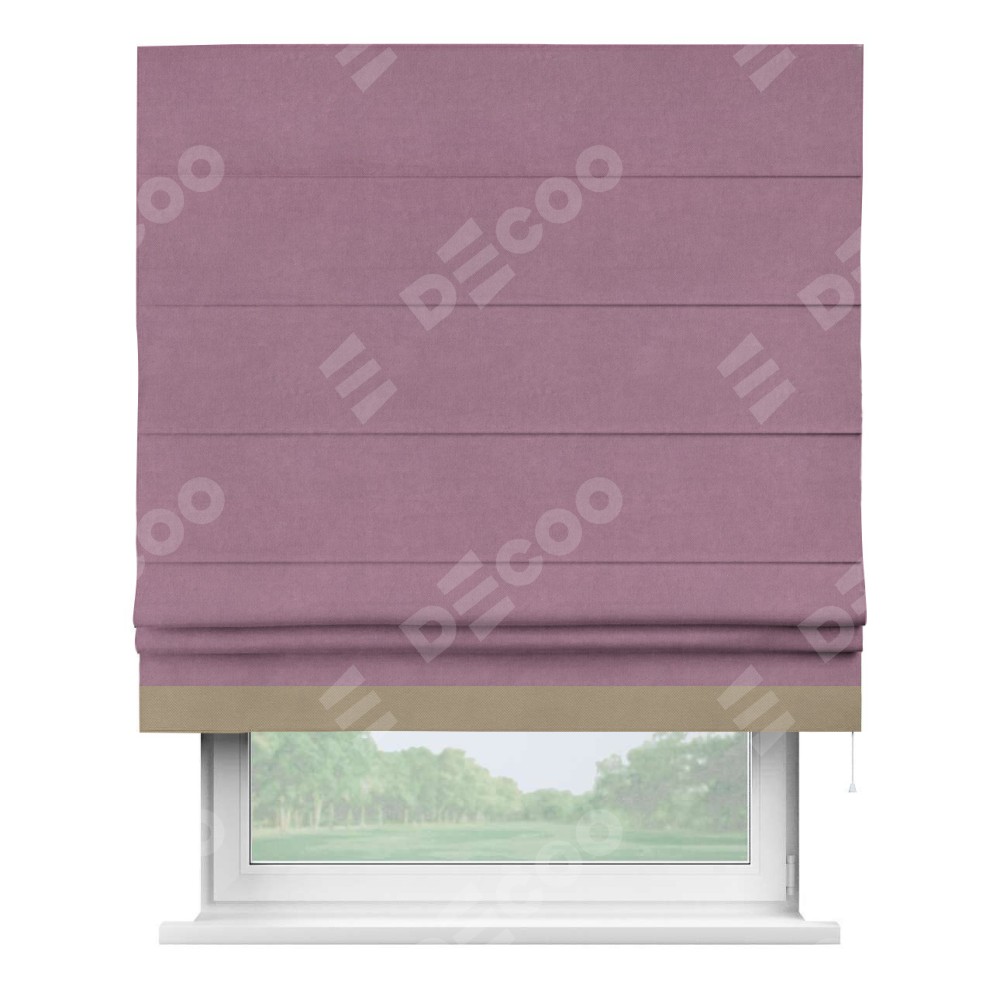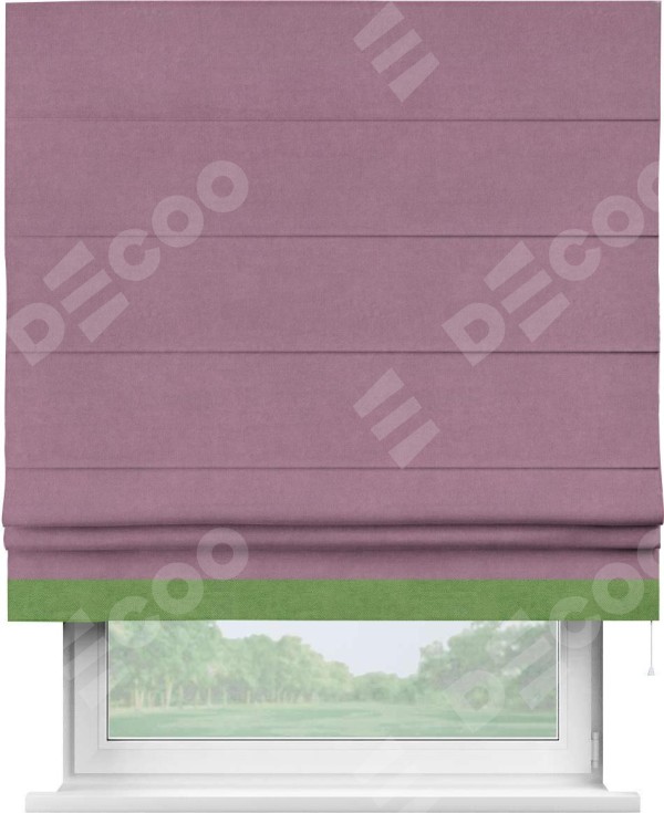 Римская штора «Кортин» с кантом Джестер, для проема, ткань вельвет лиловый