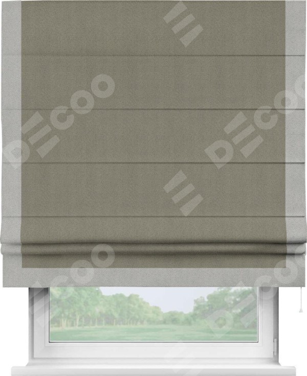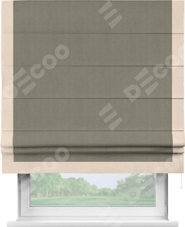 Римская штора «Кортин» с кантом Виктория, для проема, ткань блэкаут с блеском графитовый