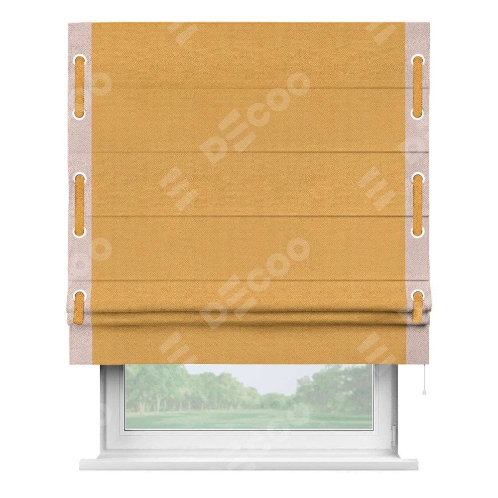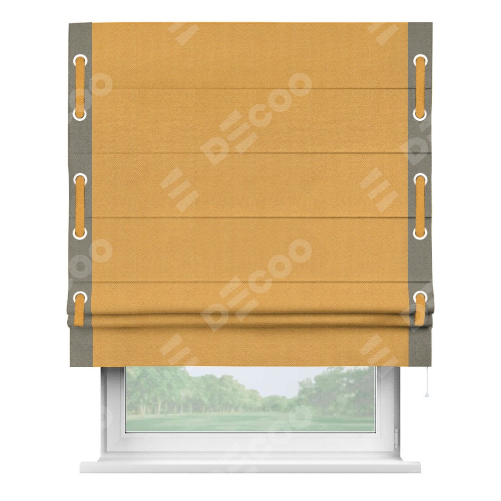 Римская штора «Кортин» с кантом Стрим Дуо (люверсы с пояском), для проема, ткань блэкаут с блеском золотой
