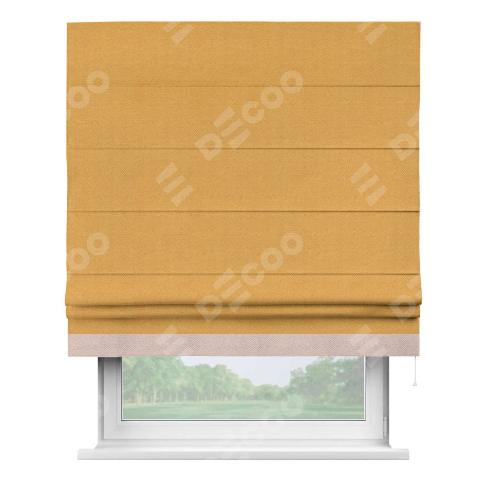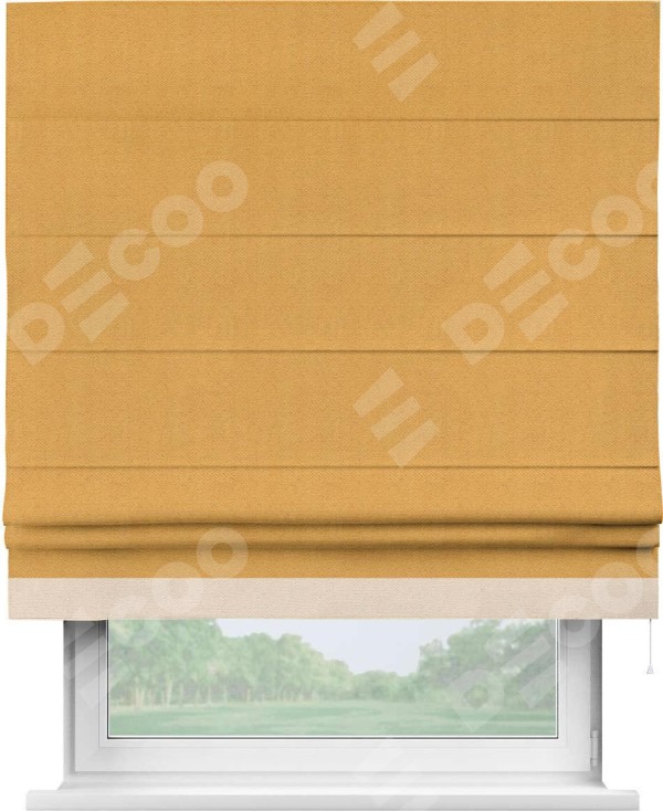 Римская штора «Кортин» с кантом Джестер, для проема, ткань блэкаут с блеском золотой