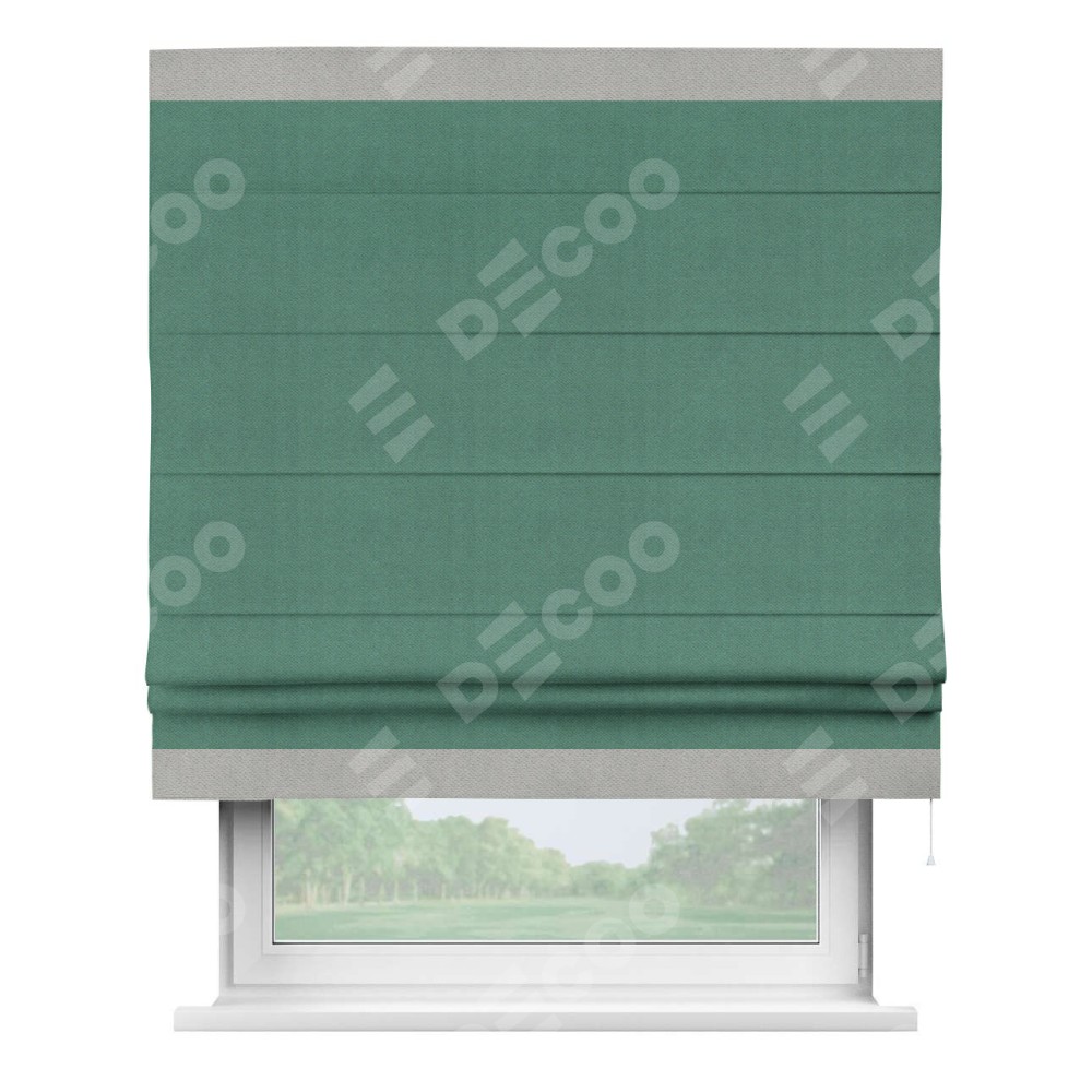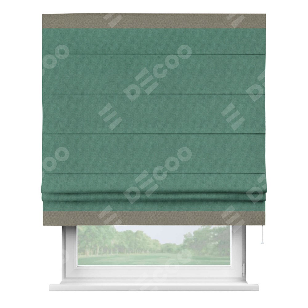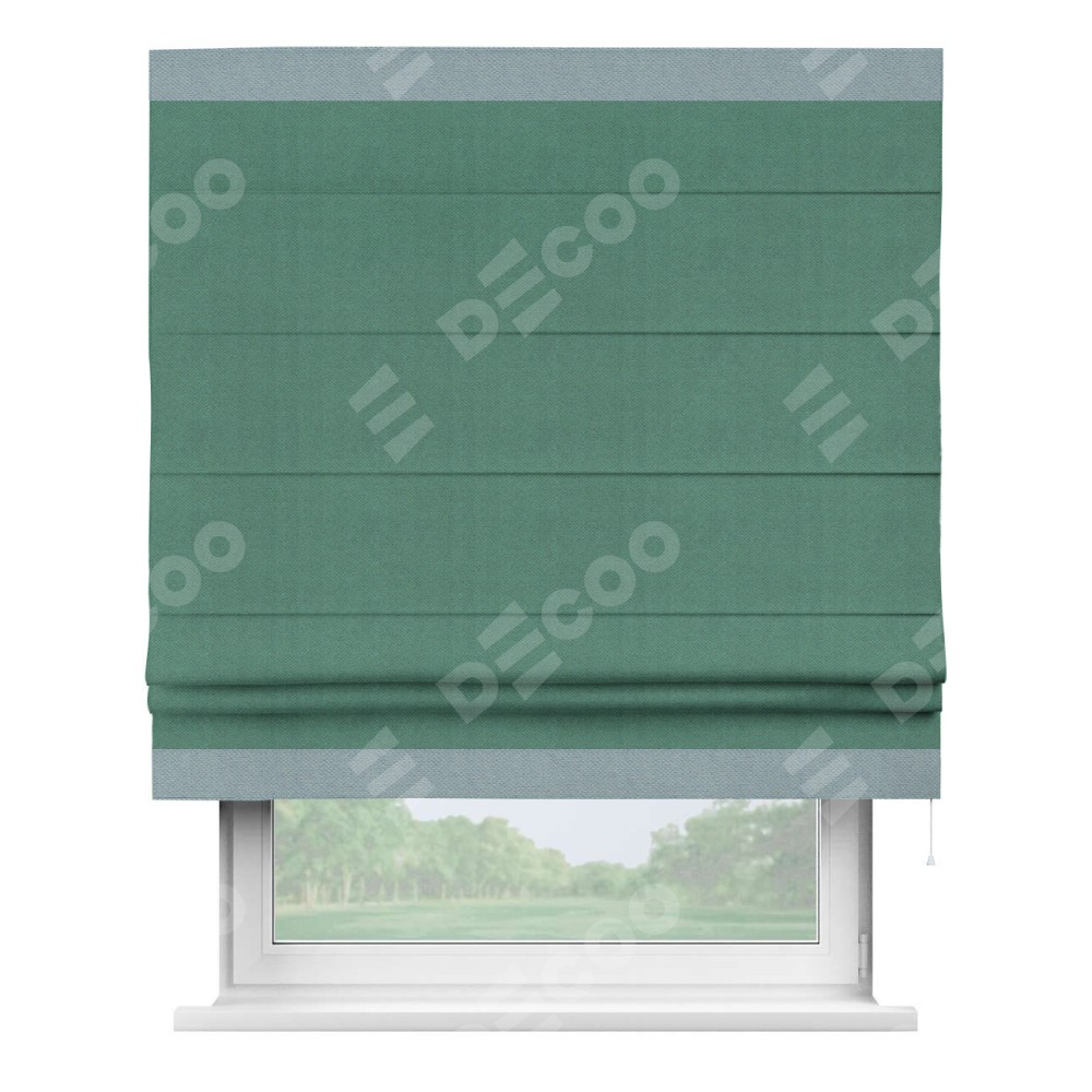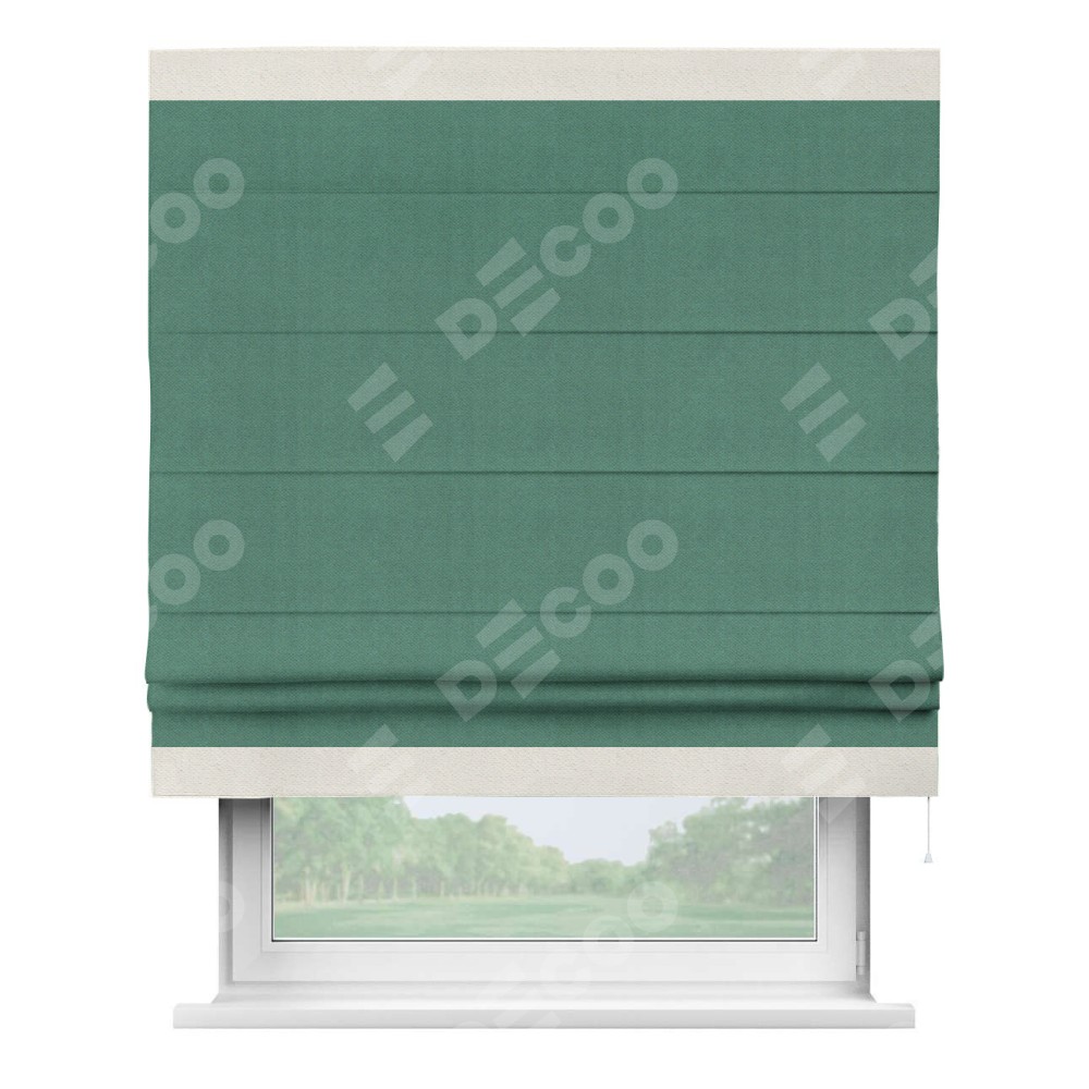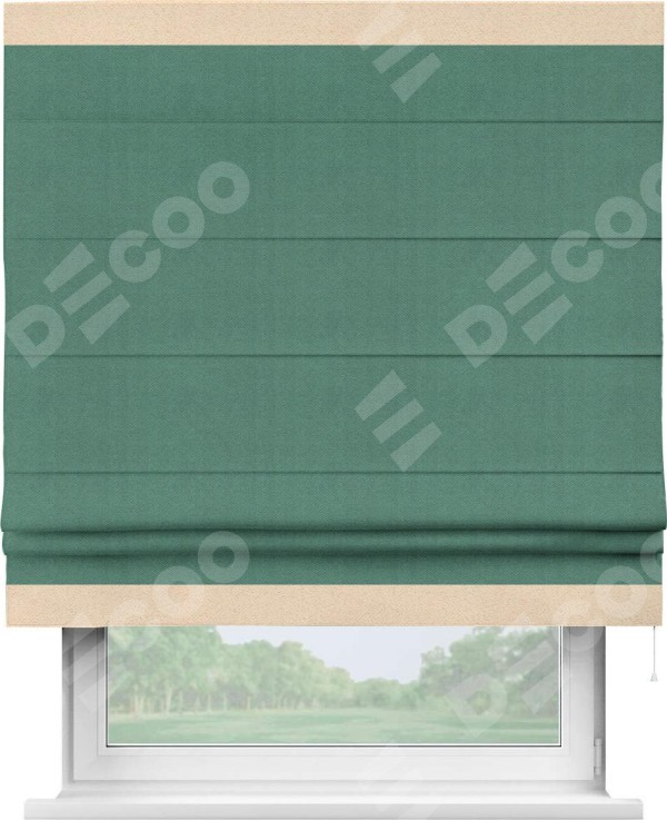 Римская штора «Кортин» с кантом Горизонт, для проема, ткань блэкаут с блеском изумрудный
