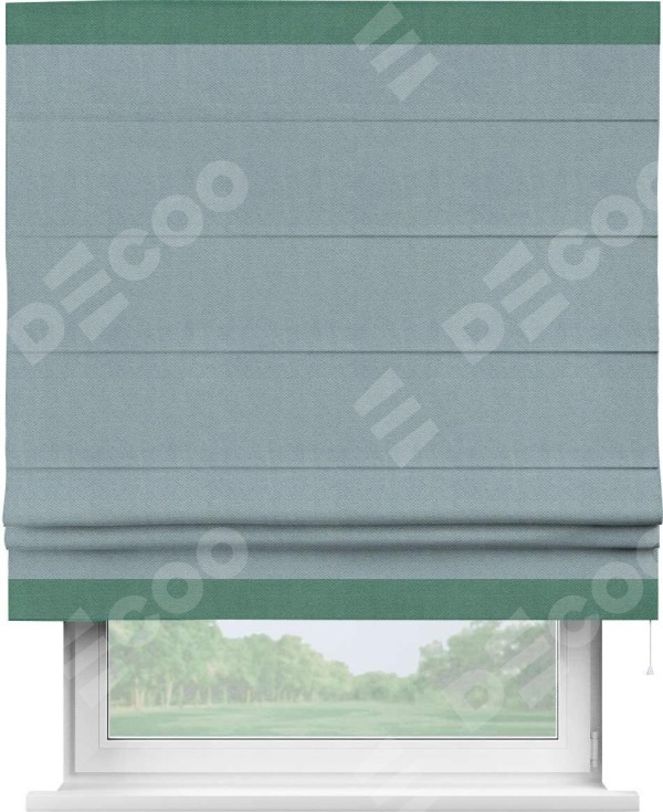 Римская штора «Кортин» с кантом Горизонт, для проема, ткань блэкаут с блеском синий
