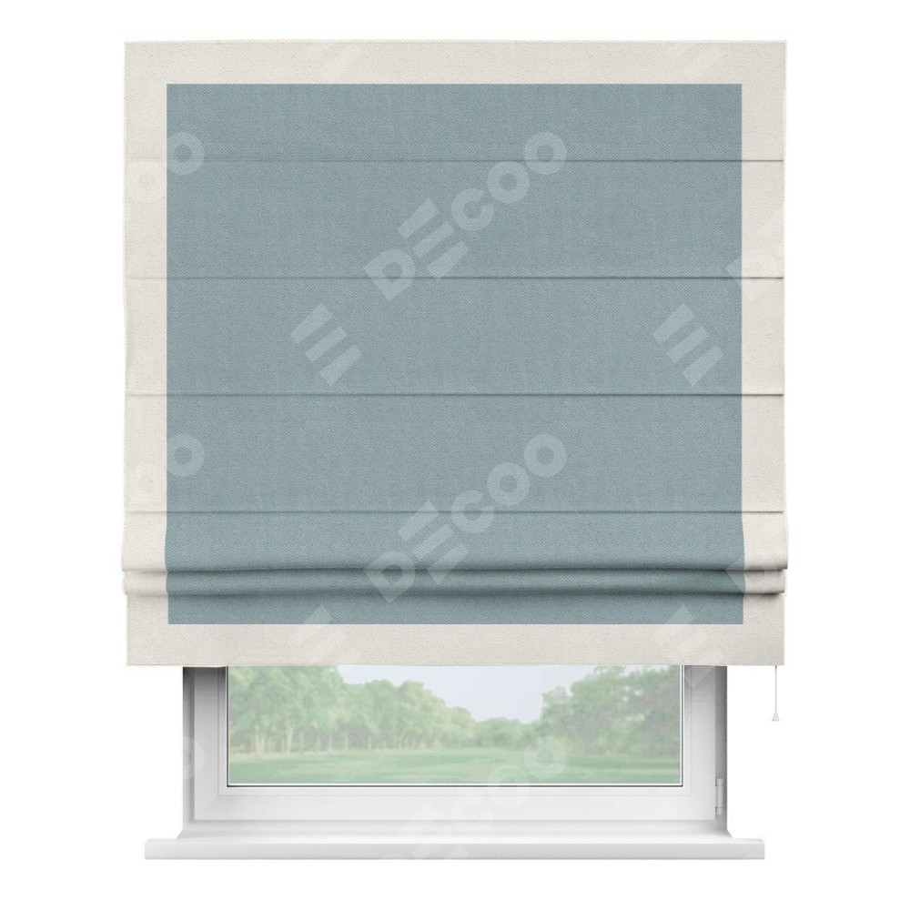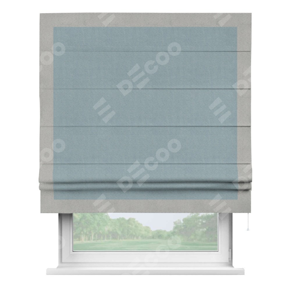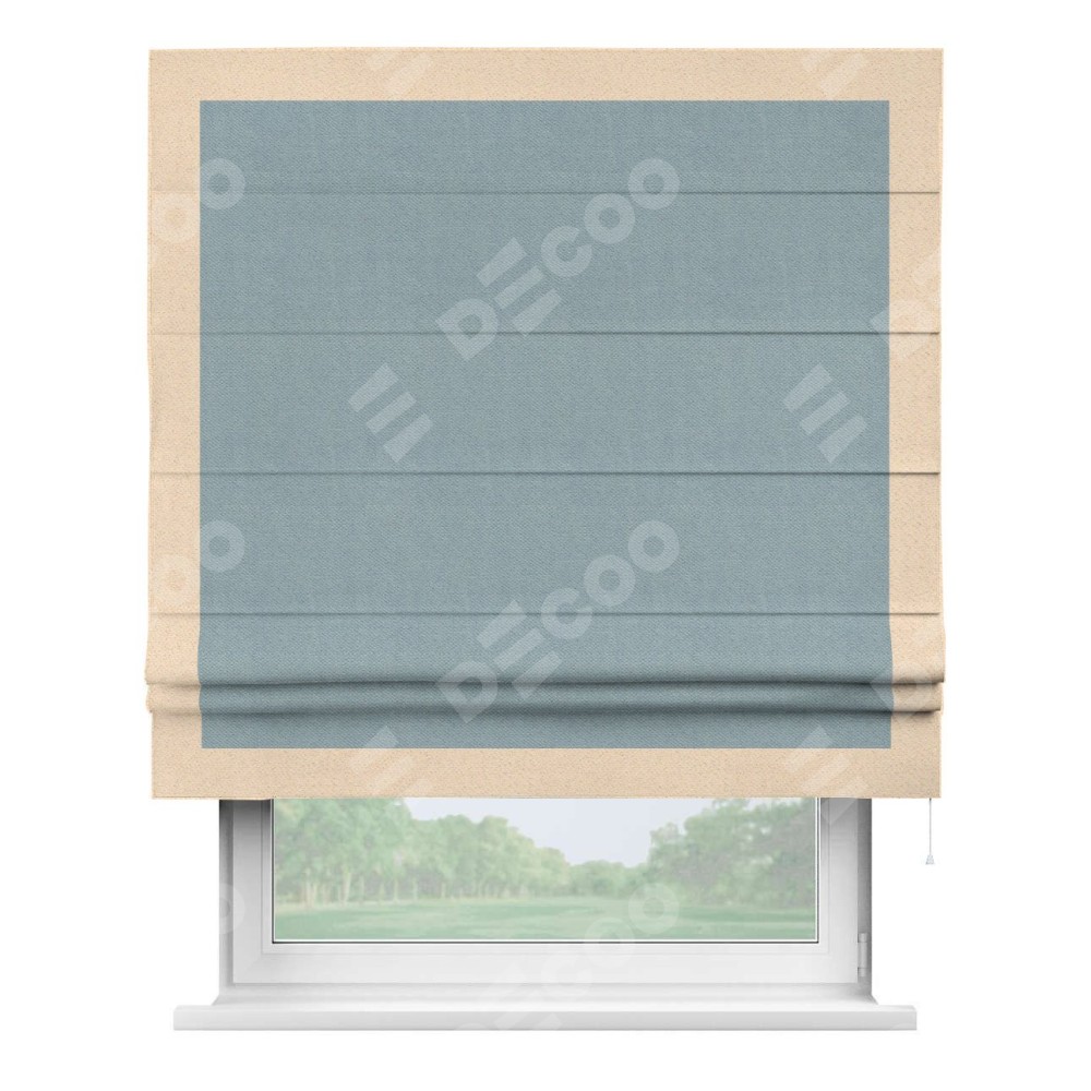 Римская штора «Кортин» с кантом Чесс, для проема, ткань блэкаут с блеском синий