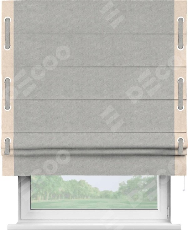 Римская штора «Кортин» с кантом Стрим Дуо (люверсы с пояском), для проема, ткань блэкаут с блеском тёмно-серый