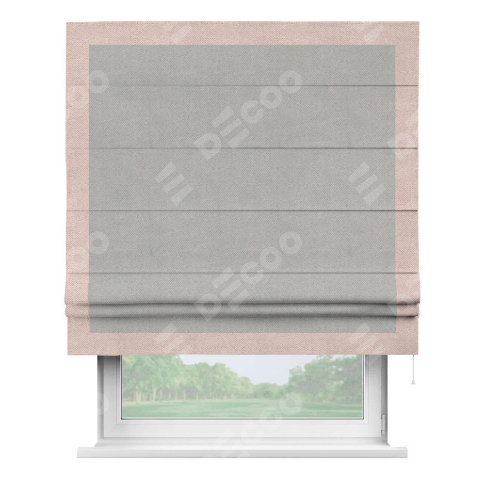 Римская штора производителя «Cortin», используется для проёма, пошита из ткани блэкаут с блеском сиреневый, артикул 34649. Отделка шторы кантом «Чесс», ткань для канта используется из блэкаута с блеском разной расцветки на выбор. Изнаночная сторона материала черного цвета, что обеспечивает необходимую светонепроницаемость. Имеет универсальный механизм и подходит для монтажа: на потолок, на стену и в нишу.