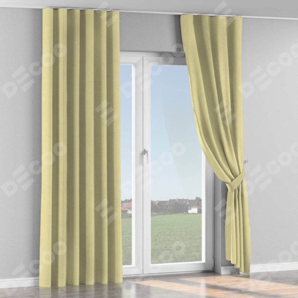 Комплект прямых штор, от производителя «Cortin», пошиты из ткани софт однотонный молочный, артикул ткани 11938. С изнаночной стороны в верхней части штор пристрачивается шторная лента с декоративными складками «Волна». Для создания элегантных складок прямые шторы шьются по стандарту с коэффициентом 1:2 (на 100 см. ширины проёма 200 см. ширины ткани).