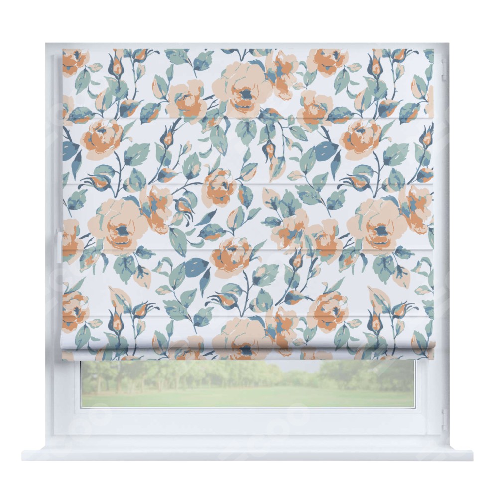 Римская штора производителя «Cortin», устанавливается на створку окна, пошита из ткани блэкаут с нанесением сублимационной печати «Винтажные розы». Штора шьётся по индивидуальным размерам, для данного типа римской шторы возможная ширина от 35 до 150 см., высота до 250 см.