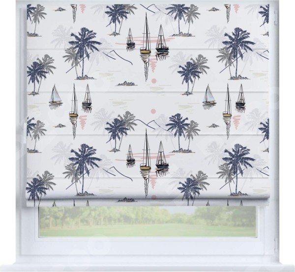 Римская штора производителя «Cortin», устанавливается на створку окна, пошита из ткани блэкаут с нанесением сублимационной печати «Морское путешествие». Штора шьётся по индивидуальным размерам, для данного типа римской шторы возможная ширина от 35 до 150 см., высота до 250 см.