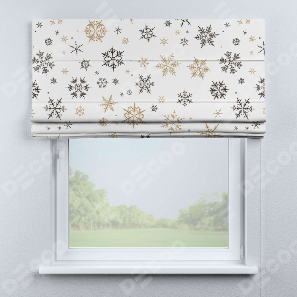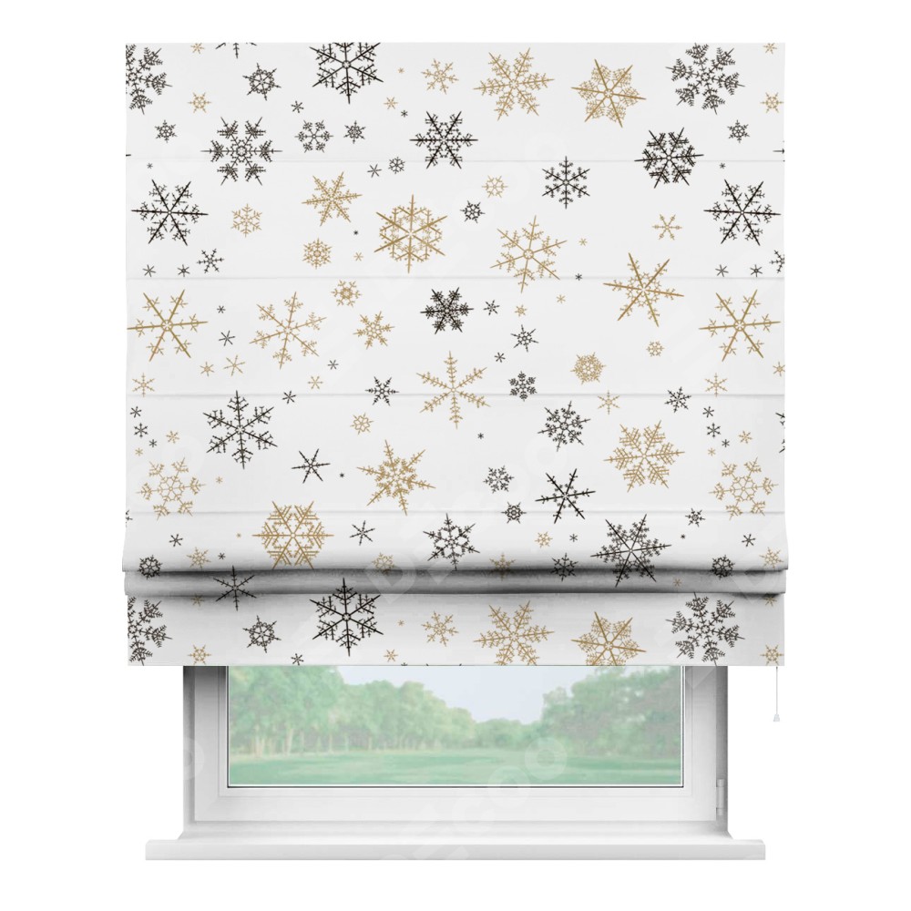 Римская штора производителя «Cortin», используется для проёма, пошита из ткани блэкаут с нанесением сублимационной печати «Зимняя метель». Имеет универсальный механизм и подходит для монтажа: на потолок, на стену и в нишу.