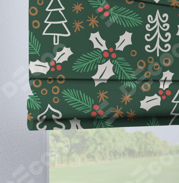 Римская штора производителя «Cortin», используется для проёма, пошита из ткани блэкаут с нанесением сублимационной печати «Рождественский узор». Данная модель пошита на петлях, комплектуется на выбор круглым карнизом и подходит для монтажа на стену. Римская штора на петлях имеет простую систему регулировки высоты, отличительным преимуществом данной модели является простой способ монтажа. Достаточно повесить ее на трубу и штора готова!