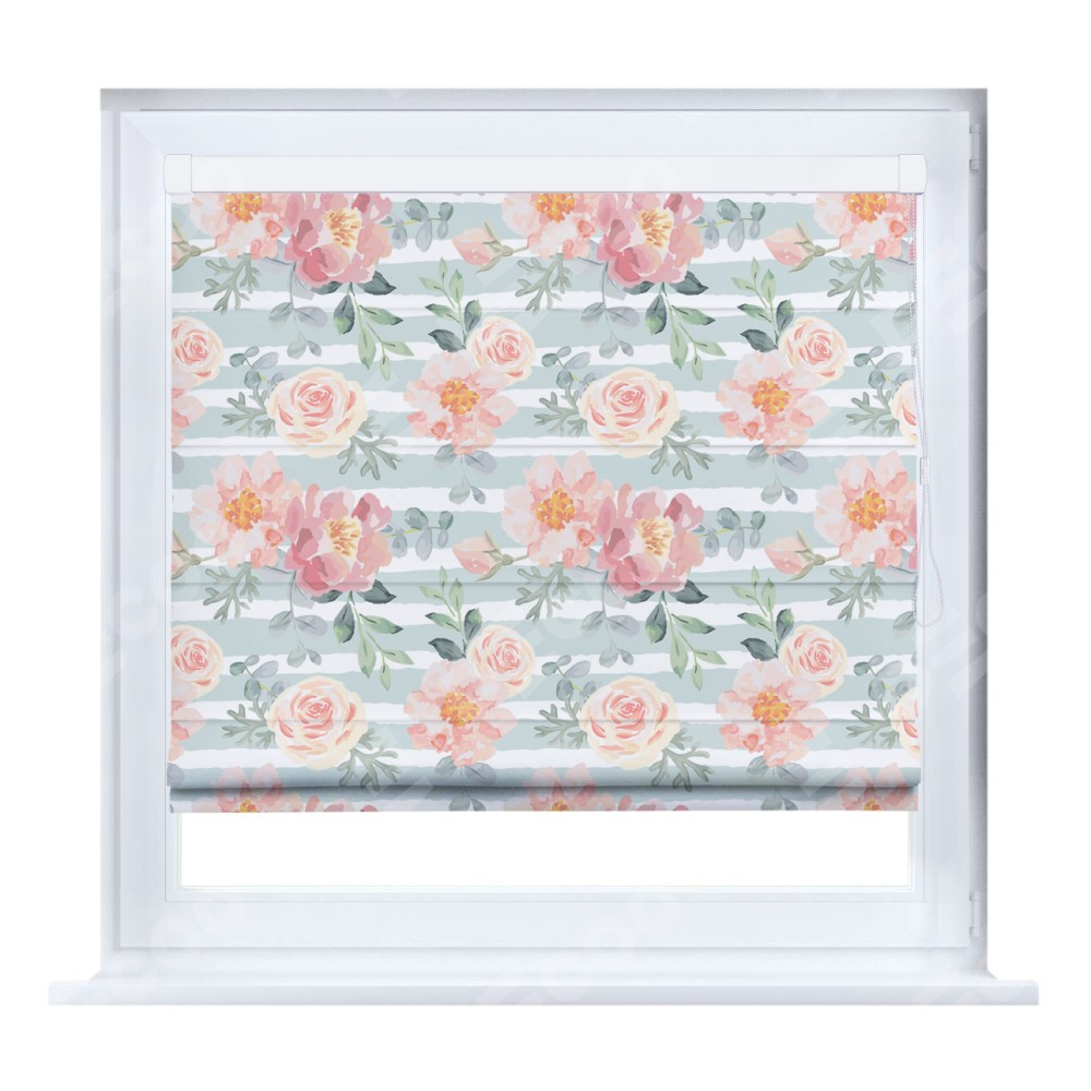 Римская штора производителя «Cortin», устанавливается на створку окна, пошита из ткани блэкаут с нанесением сублимационной печати «Розы акварель». Штора шьётся по индивидуальным размерам, для данного типа римской шторы возможная ширина от 35 до 150 см., высота до 250 см.