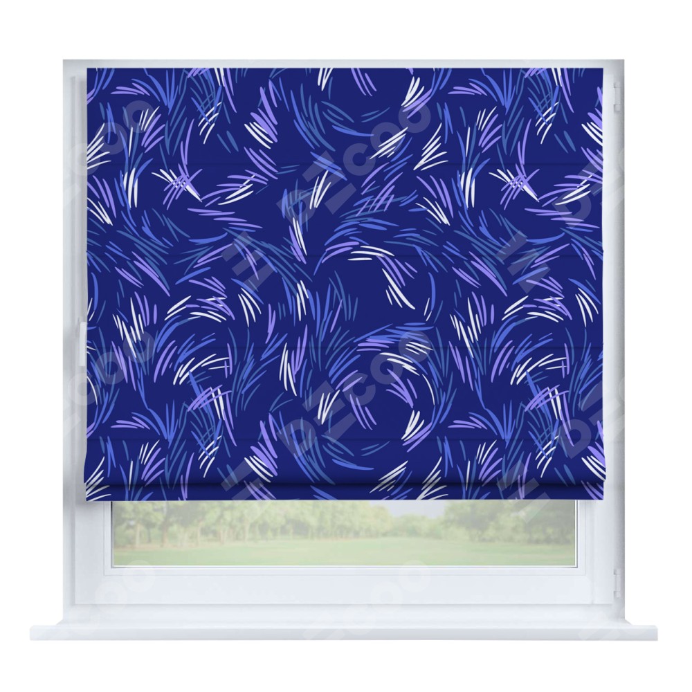 Римская штора производителя «Cortin», устанавливается на створку окна, пошита из ткани блэкаут с нанесением сублимационной печати «Синяя абстракция». Штора шьётся по индивидуальным размерам, для данного типа римской шторы возможная ширина от 35 до 150 см., высота до 250 см.