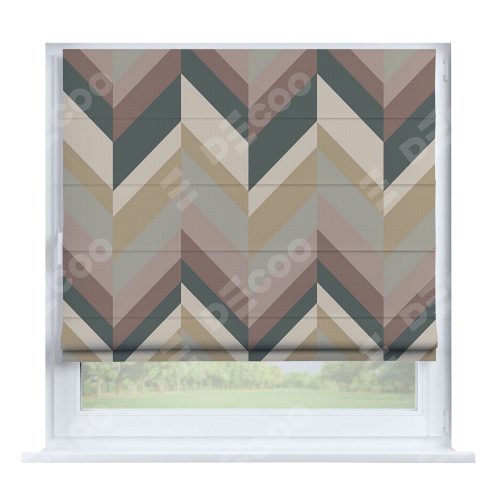 Римская штора производителя «Cortin», устанавливается на створку окна, пошита из ткани блэкаут с нанесением сублимационной печати «Шеврон Авеню». Штора шьётся по индивидуальным размерам, для данного типа римской шторы возможная ширина от 35 до 150 см., высота до 250 см.