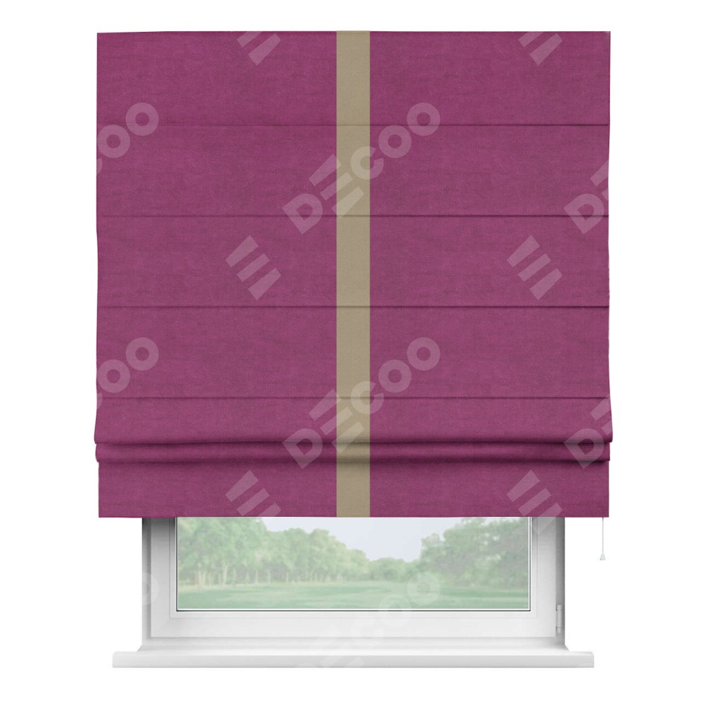 Римская штора «Кортин» с кантом Хайвэй, для проема, ткань вельвет фиолетовый