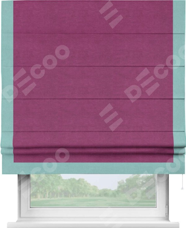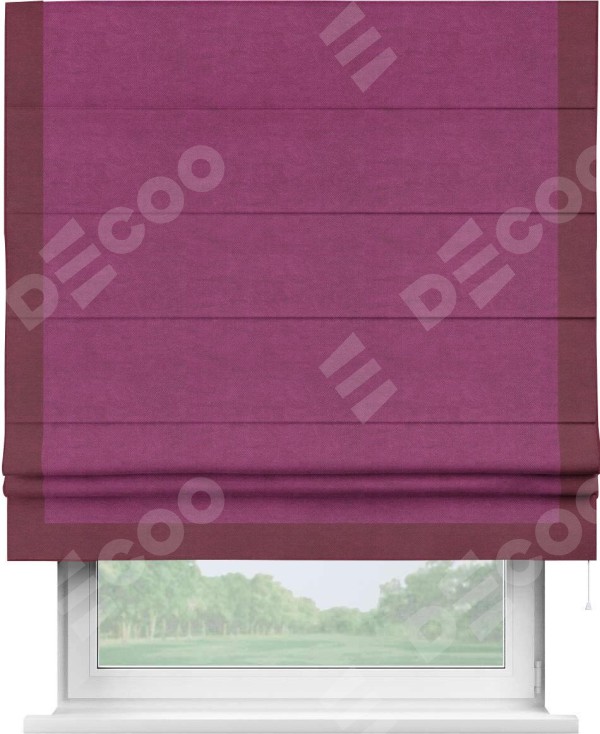Римская штора «Кортин» с кантом Виктория, для проема, ткань вельвет фиолетовый