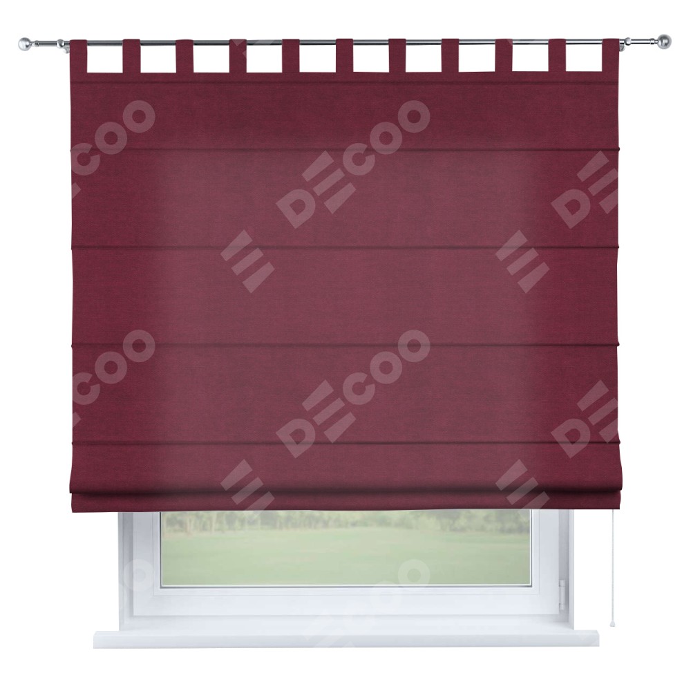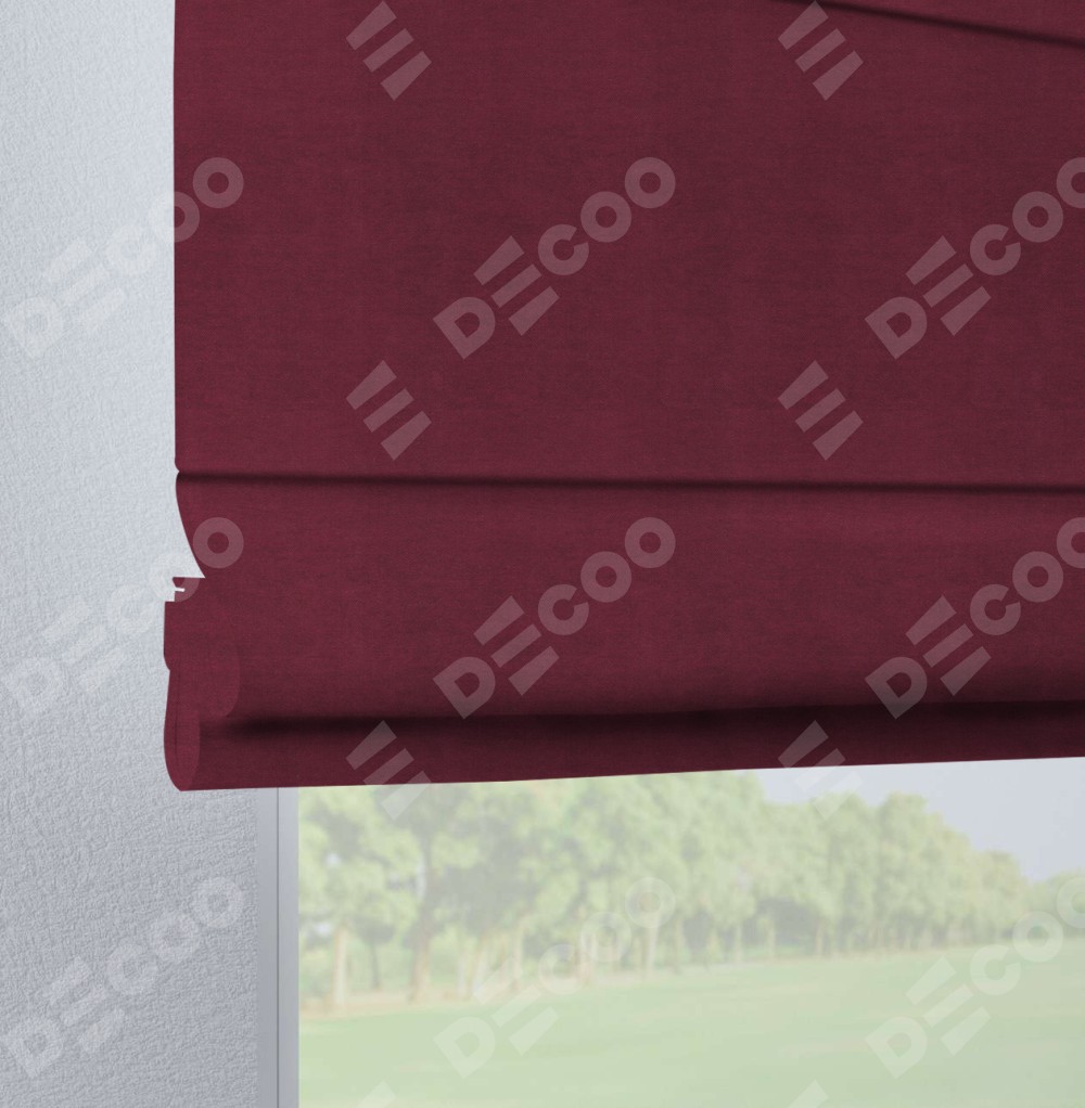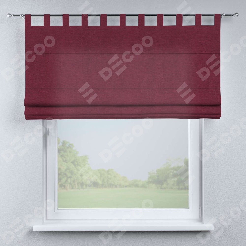 Римская штора производителя «Cortin», используется для проёма, пошита из ткани вельвет бордовый, артикул ткани 85553. Данная модель пошита на петлях, комплектуется на выбор круглым карнизом и подходит для монтажа на стену. Римская штора на петлях имеет простую систему регулировки высоты, отличительным преимуществом данной модели является простой способ монтажа. Достаточно повесить ее на трубу и штора готова!
