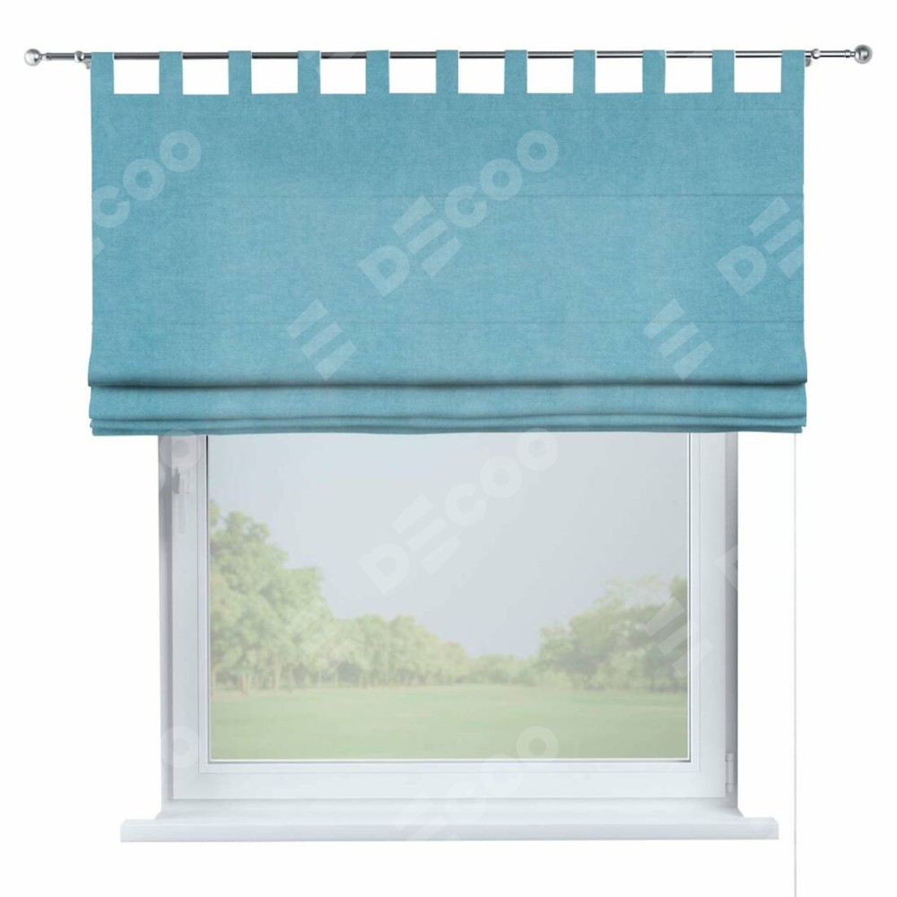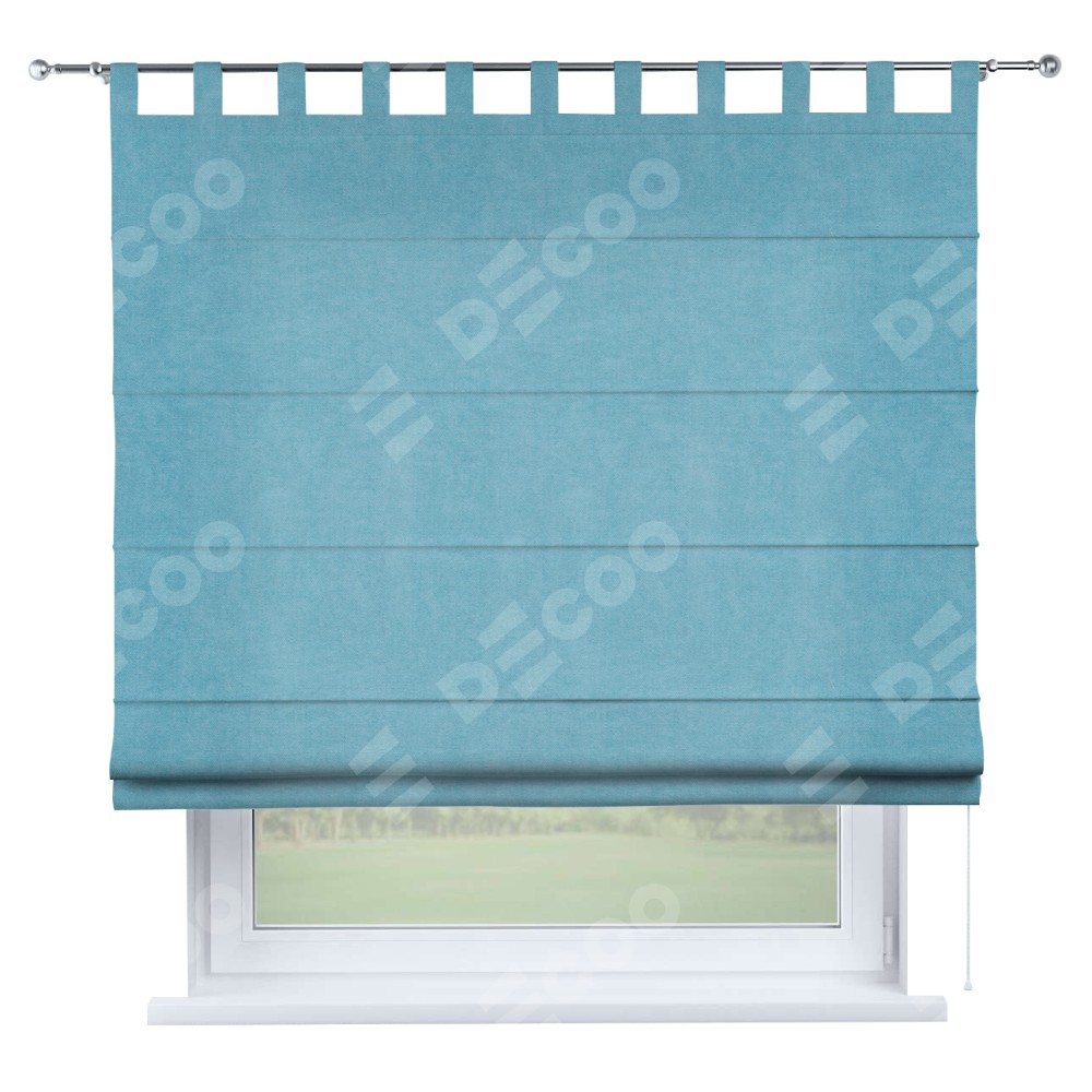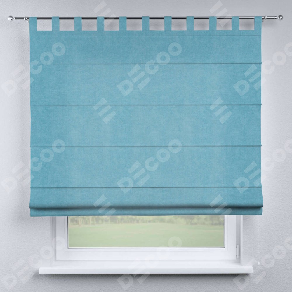 Римская штора производителя «Cortin», используется для проёма, пошита из ткани вельвет ментоловый, артикул ткани 10443. Данная модель пошита на петлях, комплектуется на выбор круглым карнизом и подходит для монтажа на стену. Римская штора на петлях имеет простую систему регулировки высоты, отличительным преимуществом данной модели является простой способ монтажа. Достаточно повесить ее на трубу и штора готова!