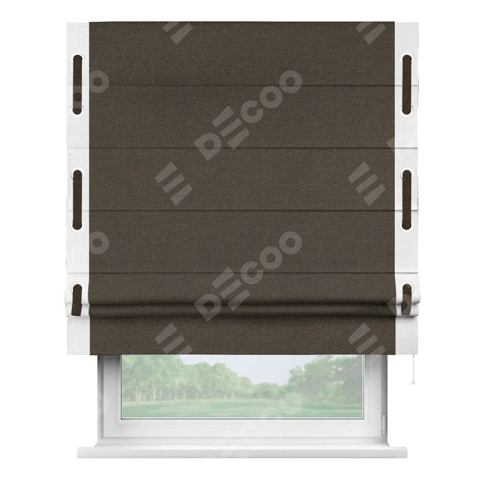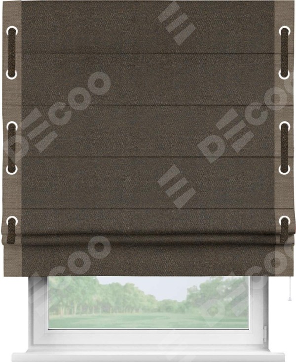 Римская штора «Кортин» с кантом Стрим Дуо (люверсы с пояском), для проема, ткань лён темно-коричневый
