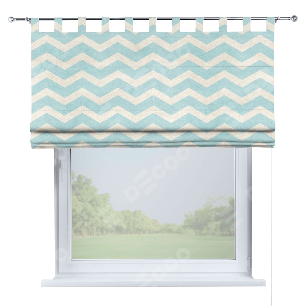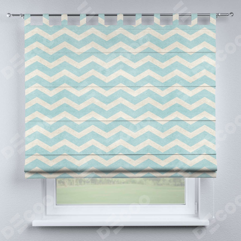 Римская штора производителя «Cortin», используется для проёма, пошита из ткани блэкаут с нанесением сублимационной печати «Голубой шеврон». Данная модель пошита на петлях, комплектуется на выбор круглым карнизом и подходит для монтажа на стену. Римская штора на петлях имеет простую систему регулировки высоты, отличительным преимуществом данной модели является простой способ монтажа. Достаточно повесить ее на трубу и штора готова!