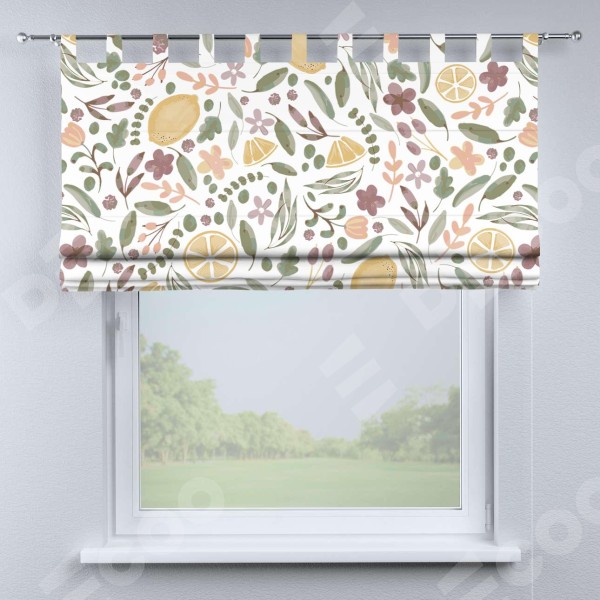 Римская штора «Кортин» на петлях «Лимоны и цветы»