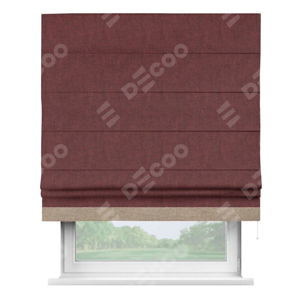 Римская штора «Кортин» с кантом Джестер, для проема, ткань лён кашемир бордовый