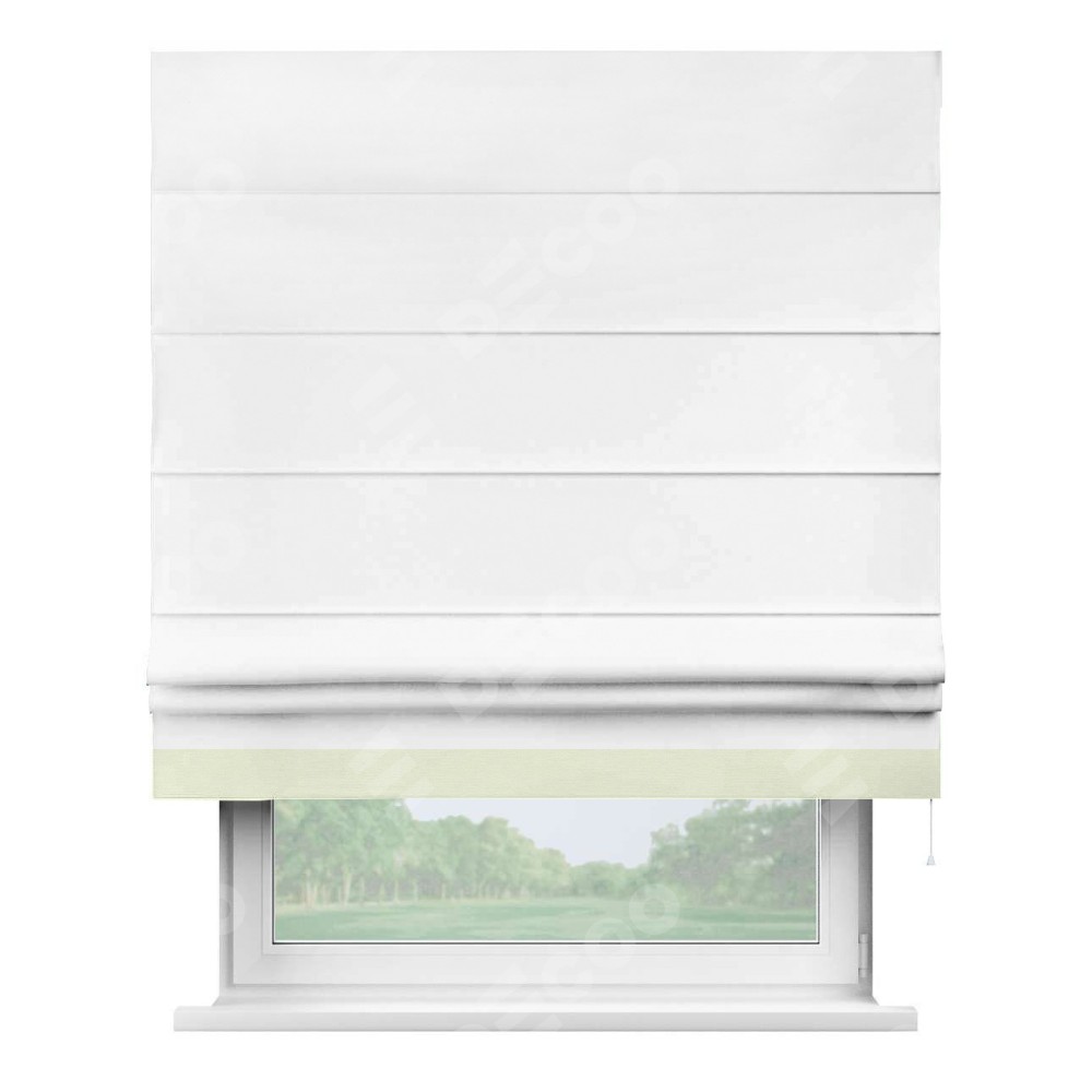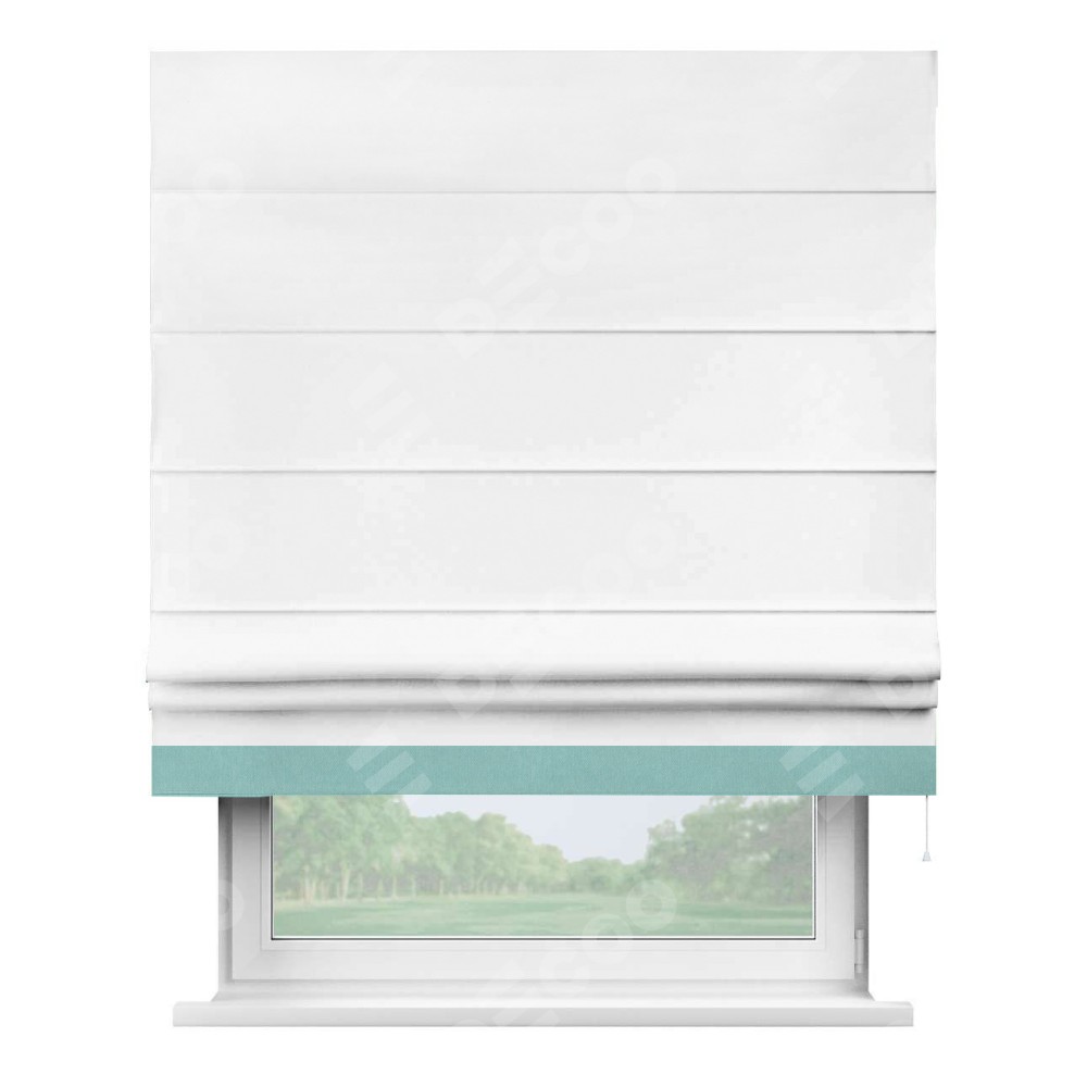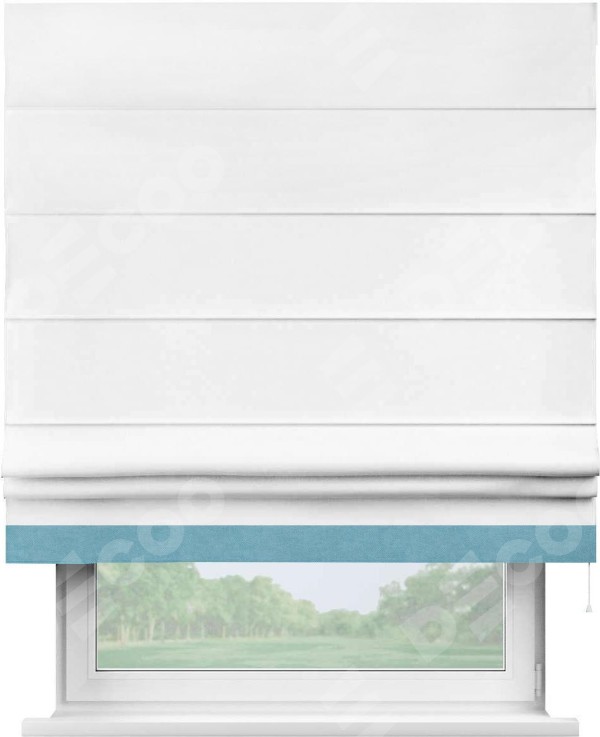 Римская штора производителя «Cortin», используется для проёма, пошита из ткани вельвет белоснежный, артикул ткани 19192. Отделка шторы кантом «Джестер», ткань для канта используется из вельвета разной расцветки на выбор. Имеет универсальный механизм и подходит для монтажа: на потолок, на стену и в нишу.