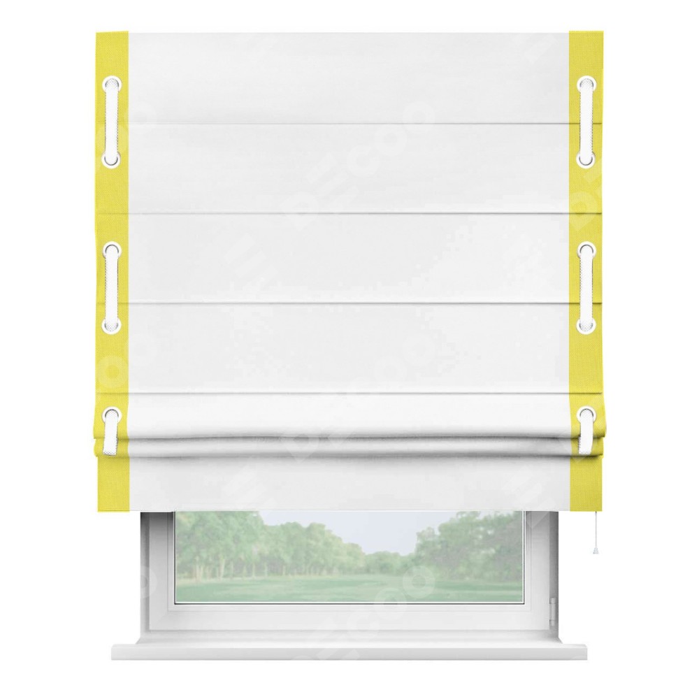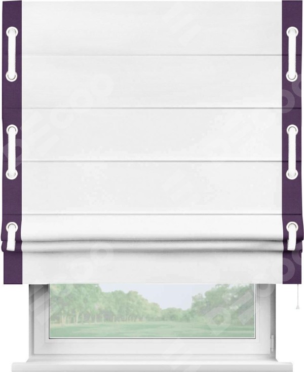 Римская штора «Кортин» с кантом Стрим Дуо (люверсы с пояском), для проема, ткань вельвет белоснежный