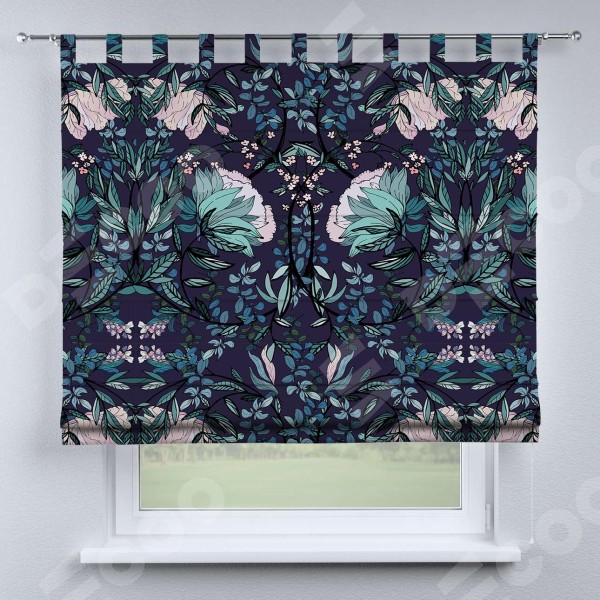 Римская штора «Кортин» на петлях «Цветочный индиго»