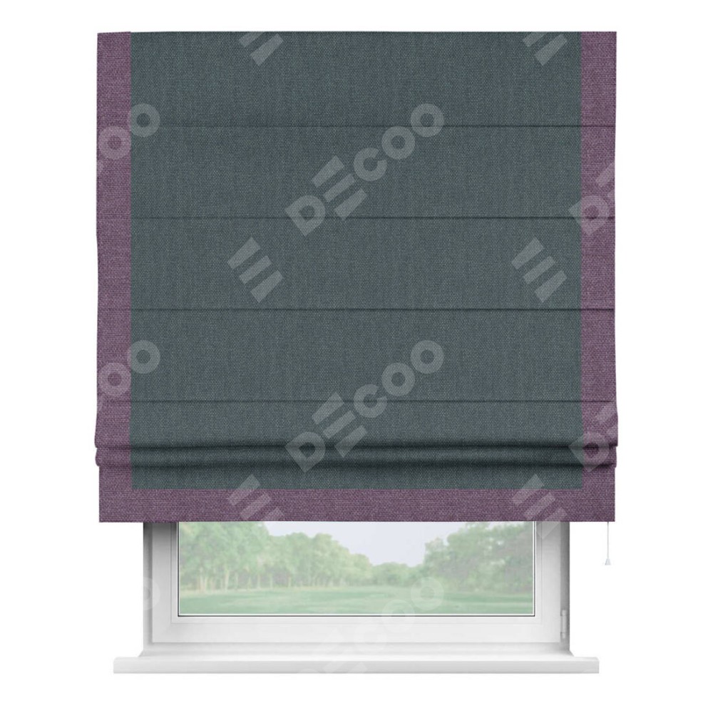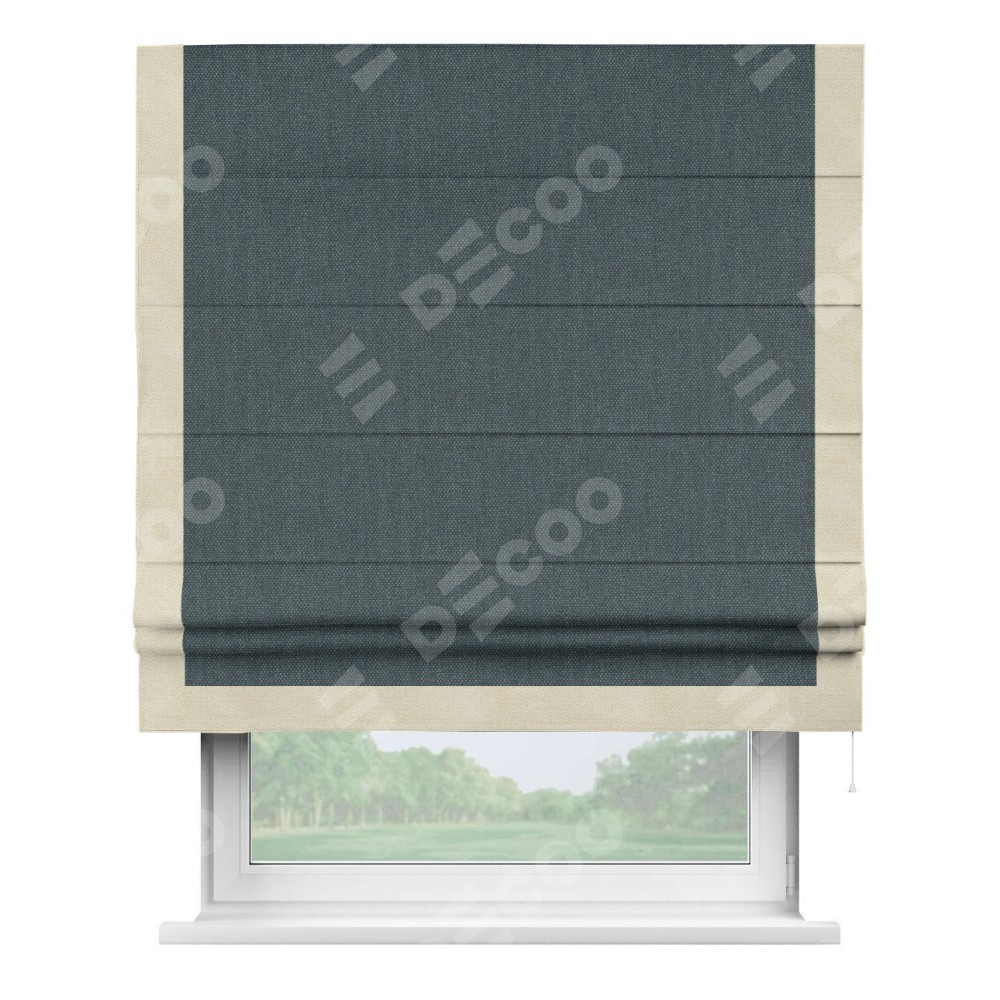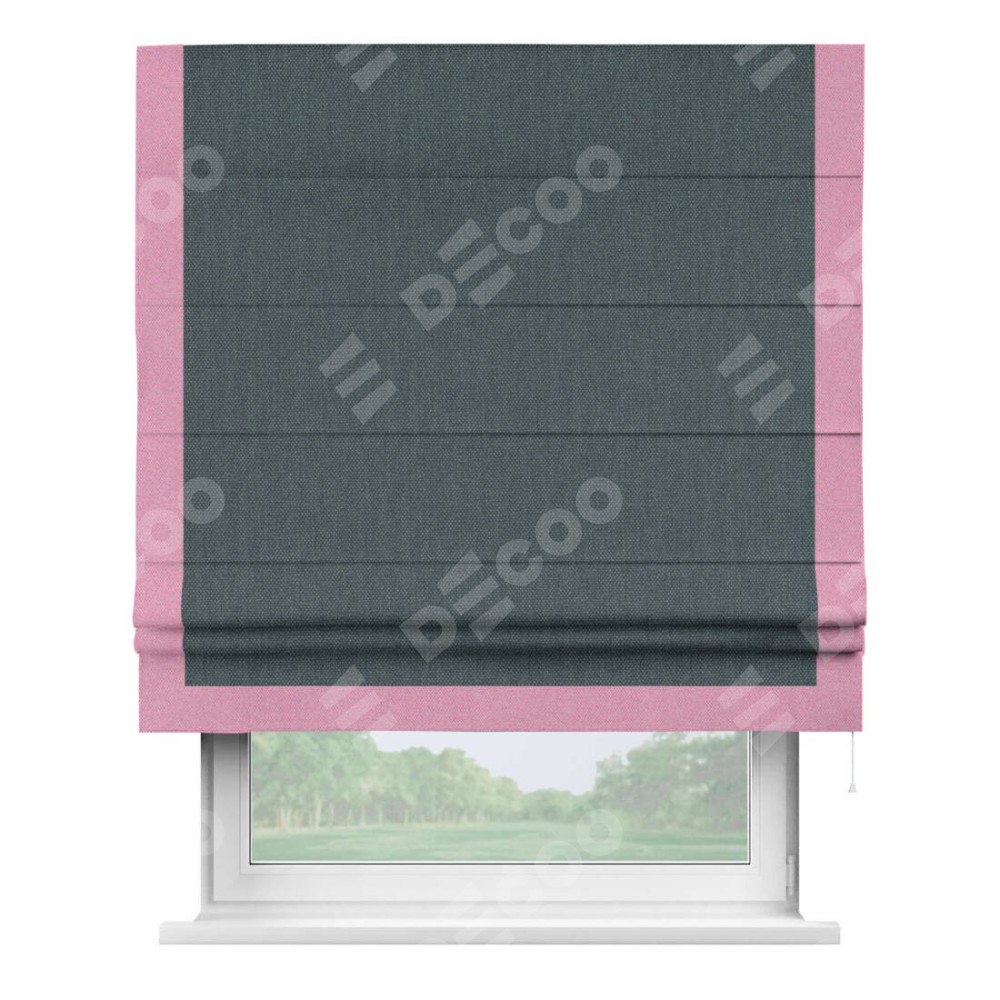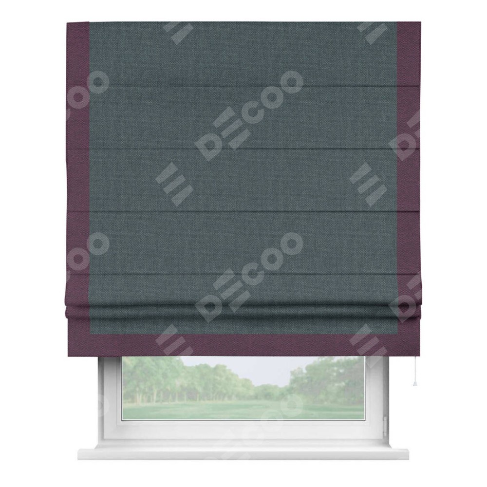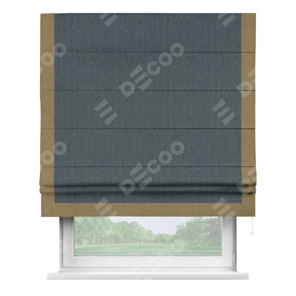 Римская штора «Кортин» с кантом Виктория, для проема, ткань лён димаут, серо-синий
