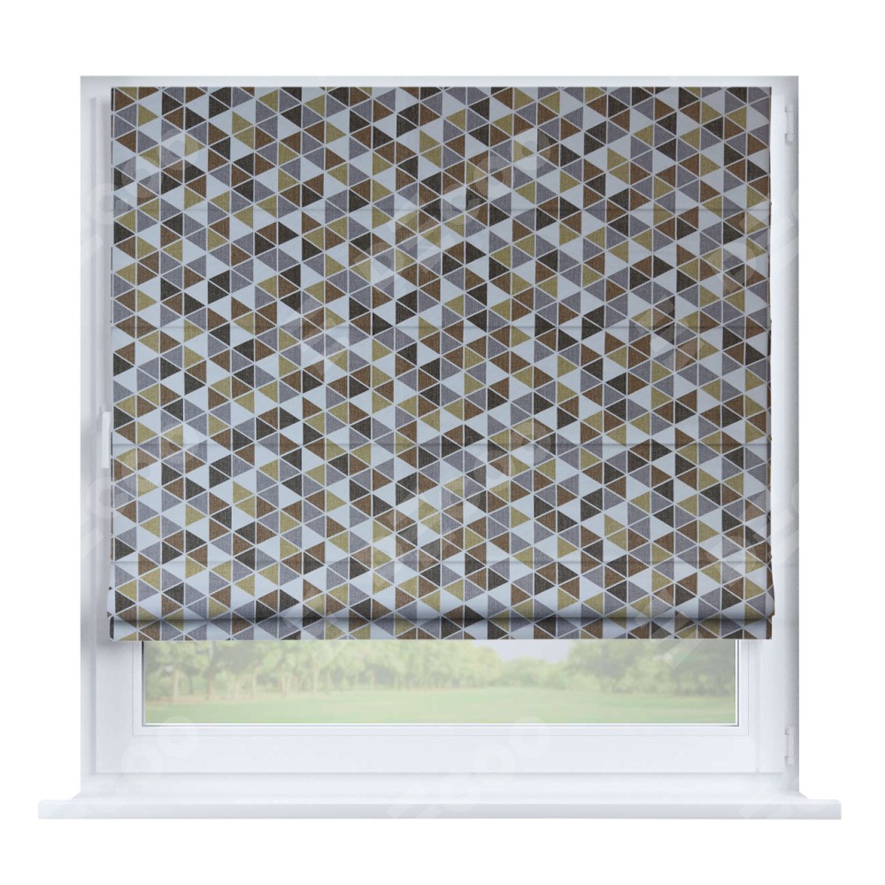 Римская штора производителя «Cortin», устанавливается на створку окна, пошита из ткани димаут «Треугольники коричневые», артикул 23021. Штора шьётся по индивидуальным размерам, для данного типа римской шторы возможная ширина от 35 до 150 см., высота до 250 см.