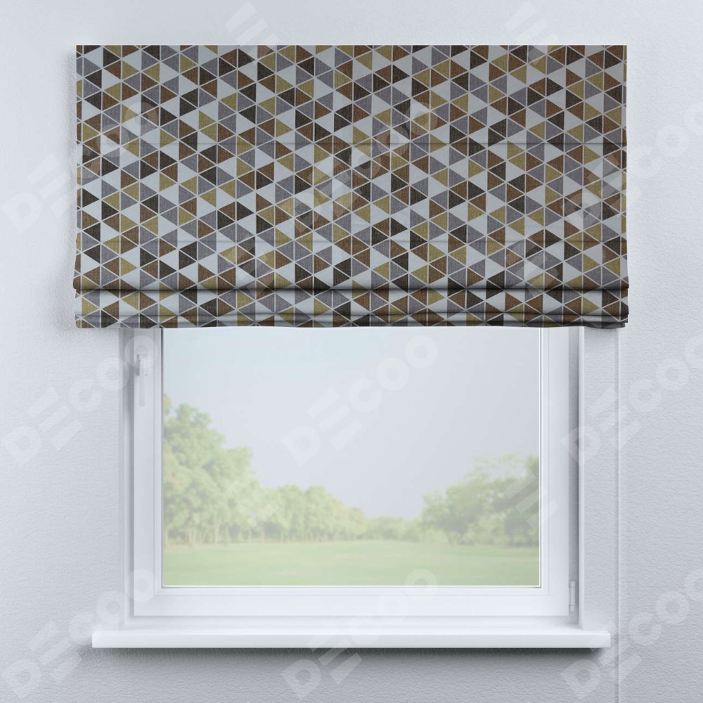 Римская штора «Кортин» для проема, ткань димаут «Треугольники коричневые»