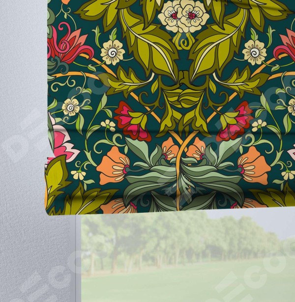 Римская штора производителя «Cortin», используется для проёма, пошита из ткани блэкаут с нанесением сублимационной печати «Цветок морриса». Данная модель пошита на петлях, комплектуется на выбор круглым карнизом и подходит для монтажа на стену. Римская штора на петлях имеет простую систему регулировки высоты, отличительным преимуществом данной модели является простой способ монтажа. Достаточно повесить ее на трубу и штора готова!