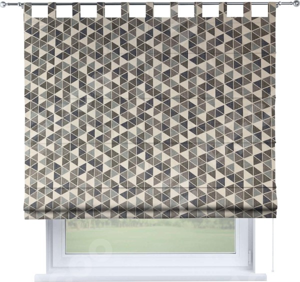 Римская штора производителя «Cortin», используется для проёма, пошита из ткани димаут «Треугольники синие», артикул ткани 23022. Данная модель пошита на петлях, комплектуется на выбор круглым карнизом и подходит для монтажа на стену. Римская штора на петлях имеет простую систему регулировки высоты, отличительным преимуществом данной модели является простой способ монтажа. Достаточно повесить ее на трубу и штора готова!