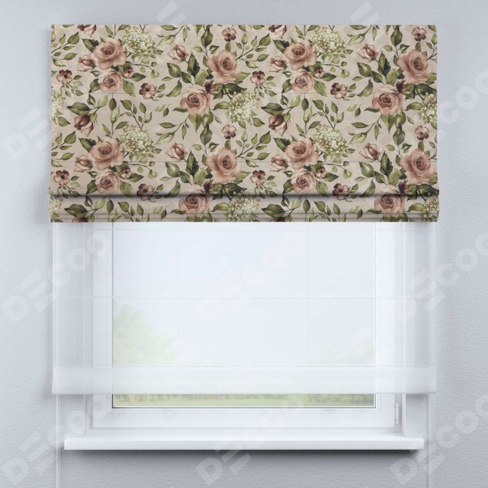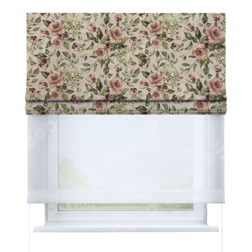 Римская штора «Кортин» день-ночь, ткань «Розы бежевые»