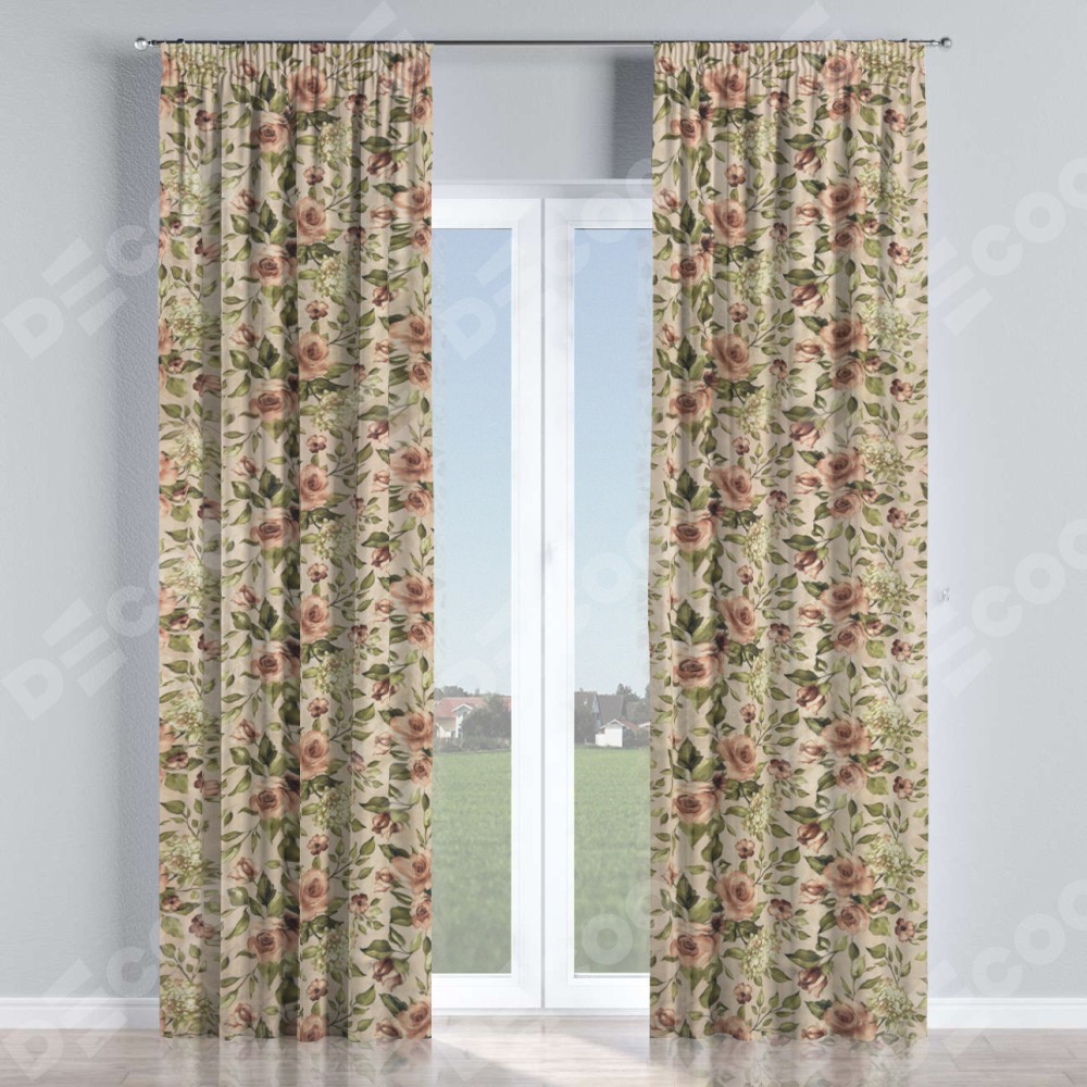 Комплект штор на тесьме «Карандаш», ткань «Розы бежевые»