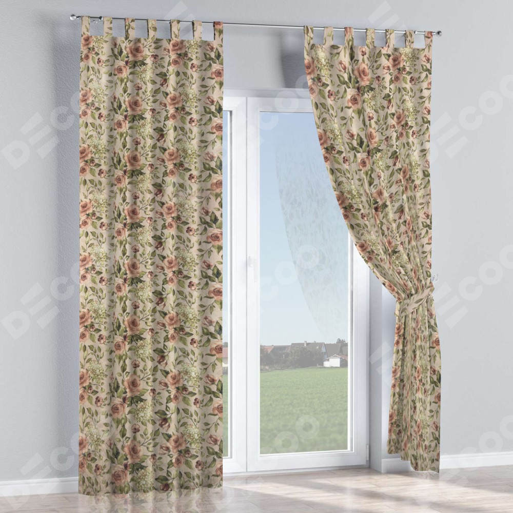 Комплект прямых штор, от производителя «Cortin», пошиты из ткани «Розы бежевые», артикул ткани 34564. Данная модель пошита на петлях, комплектуется на выбор круглым карнизом и подходит для монтажа на стену или потолок. Прямые шторы на петлях шьются по стандарту с коэффициентом 1/2 (на 100 см. ширины проёма 200 см. ширины ткани), отличительным преимуществом данной модели является простой способ монтажа. Достаточно повесить ее на трубу и штора готова!