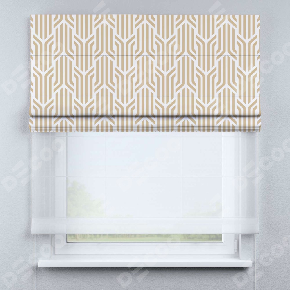 Римская штора день-ночь производителя «Cortin», используется для проёма, пошита из двух полотен, с лицевой блэкаут с нанесением сублимационной печати «Виват», вторая ткань тюль (по стандарту комплектуется тюль белого цвета артикул V-01). Имеет универсальный механизм и подходит для монтажа: на потолок, на стену и в нишу.