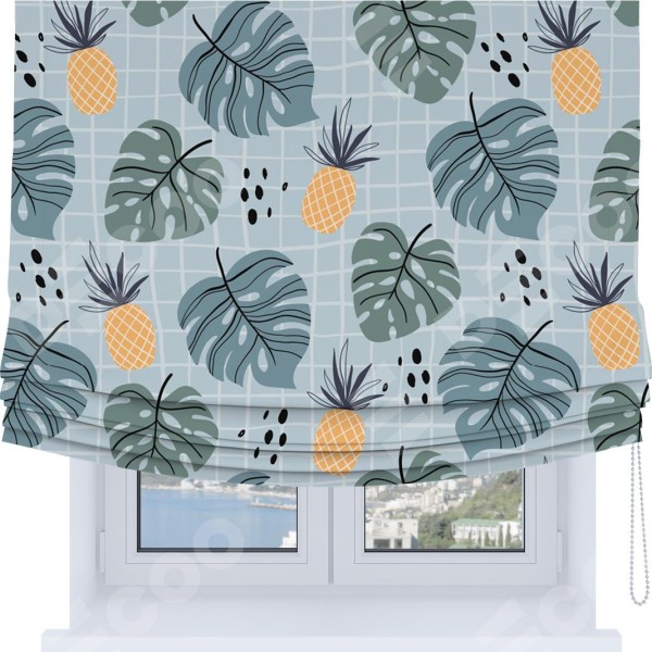 Римская штора Soft с мягкими складками, «Ананасы и листья монстеры»