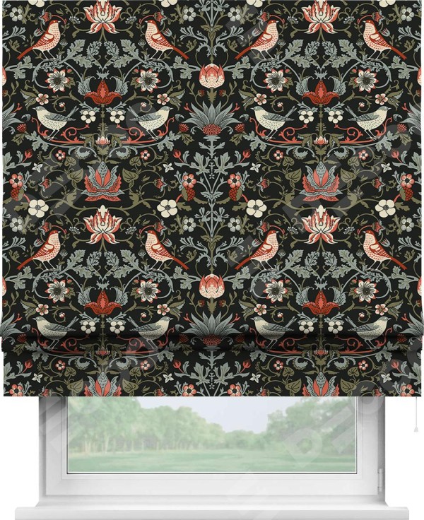 Римская штора «Кортин» для проема «Зачарованные птицы»