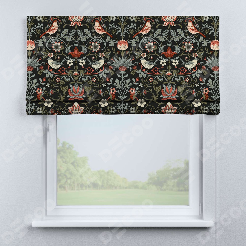 Римская штора производителя «Cortin», используется для проёма, пошита из ткани блэкаут с нанесением сублимационной печати «Зачарованные птицы». Имеет универсальный механизм и подходит для монтажа: на потолок, на стену и в нишу.