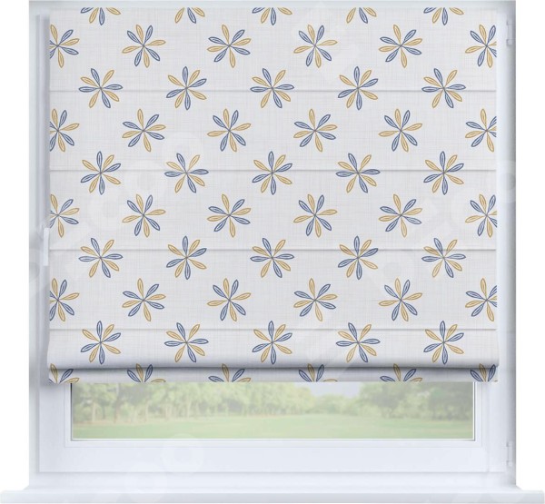 Римская штора производителя «Cortin», устанавливается на створку окна, пошита из ткани блэкаут с нанесением сублимационной печати «Ромашки кантри». Штора шьётся по индивидуальным размерам, для данного типа римской шторы возможная ширина от 35 до 150 см., высота до 250 см.